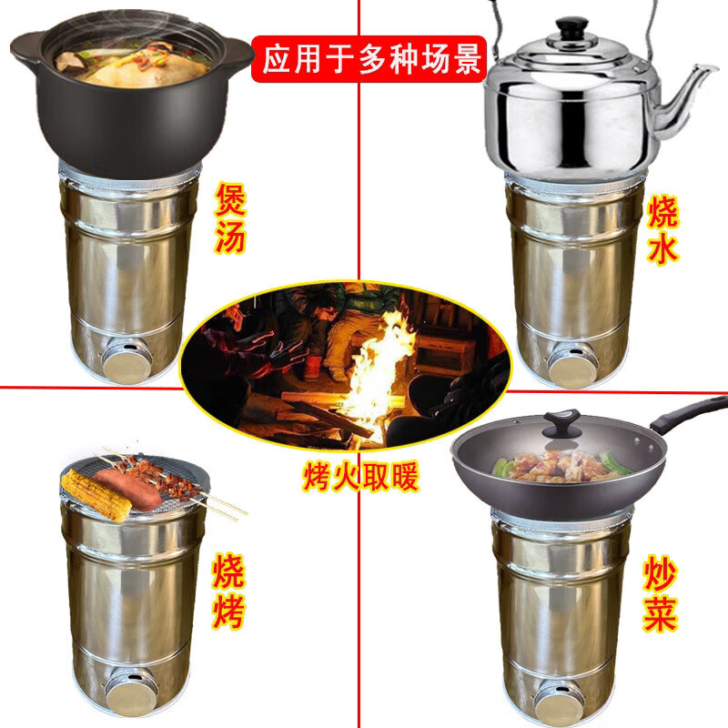 嘉久福送货上门不锈钢柴火灶可移动农村家用烧木柴灶台带锅圈 55cm锅 单灶