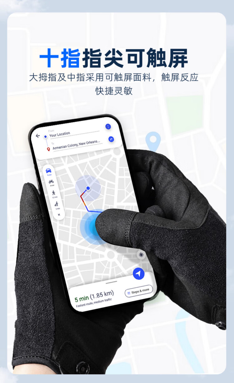 骆驼(CAMEL)新品户外运动防风保暖手套冬季触屏防滑骑行男女薄款60字符内 A1W3GZ103,墨黑,薄绒内里 L