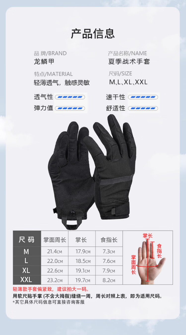 龙鳞甲夏季轻薄透气射击手套手指可触屏新款户外全指吸汗骑行战术手套 超薄射击手套 XXL