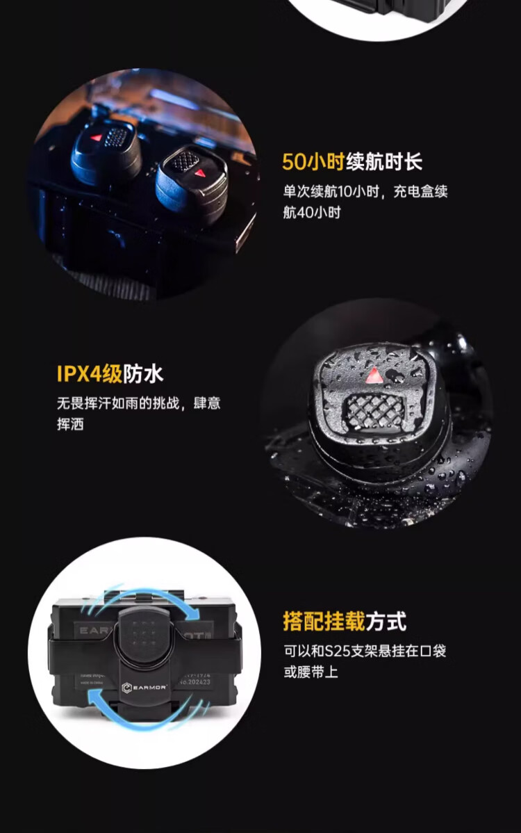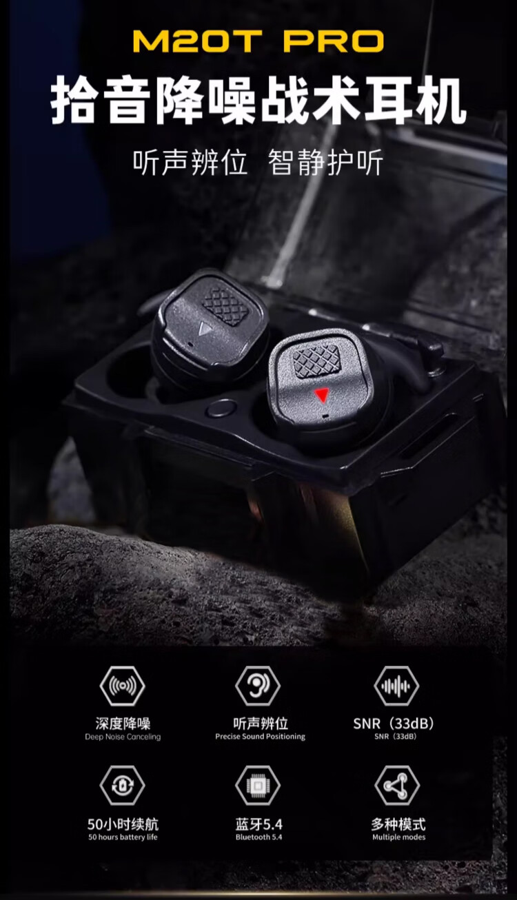 EARMOR耳魔M20T PRO战术拾音降噪耳机蓝牙防护耳塞军迷装备拾音射击通讯 M20T PRO战术黑