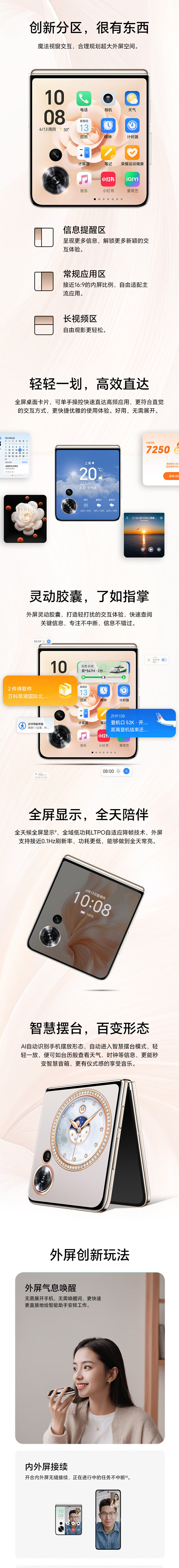 外形外观:外观小巧特别精致,一开一合带来不同的情绪价值。之前朋友买了华为的折叠屏手机,一下就被戳中了。对比了华为,小米,最终选了荣耀,主要是觉得外屏很有用,然后拍照也很不错。不是美丽的小废物。