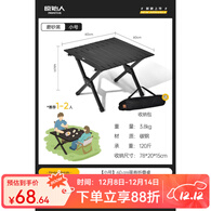 原始人蛋卷桌户外折叠桌便携式野餐桌椅露营装备用品野炊野营套装 【碳钢款】60耀黑蛋卷桌-赠收纳袋
