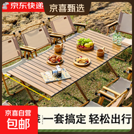 北乐户外便携式露营蛋卷桌可折叠桌椅子野餐摆摊桌椅野营野炊装备套装 木纹超大号【150cm】+克米特椅*4