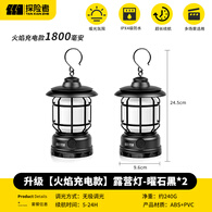 探险者复古露营灯照明灯帐篷氛围灯户外野营手提挂灯LED长续航马灯装备 【火焰充电款】露营灯-曜石黑*2