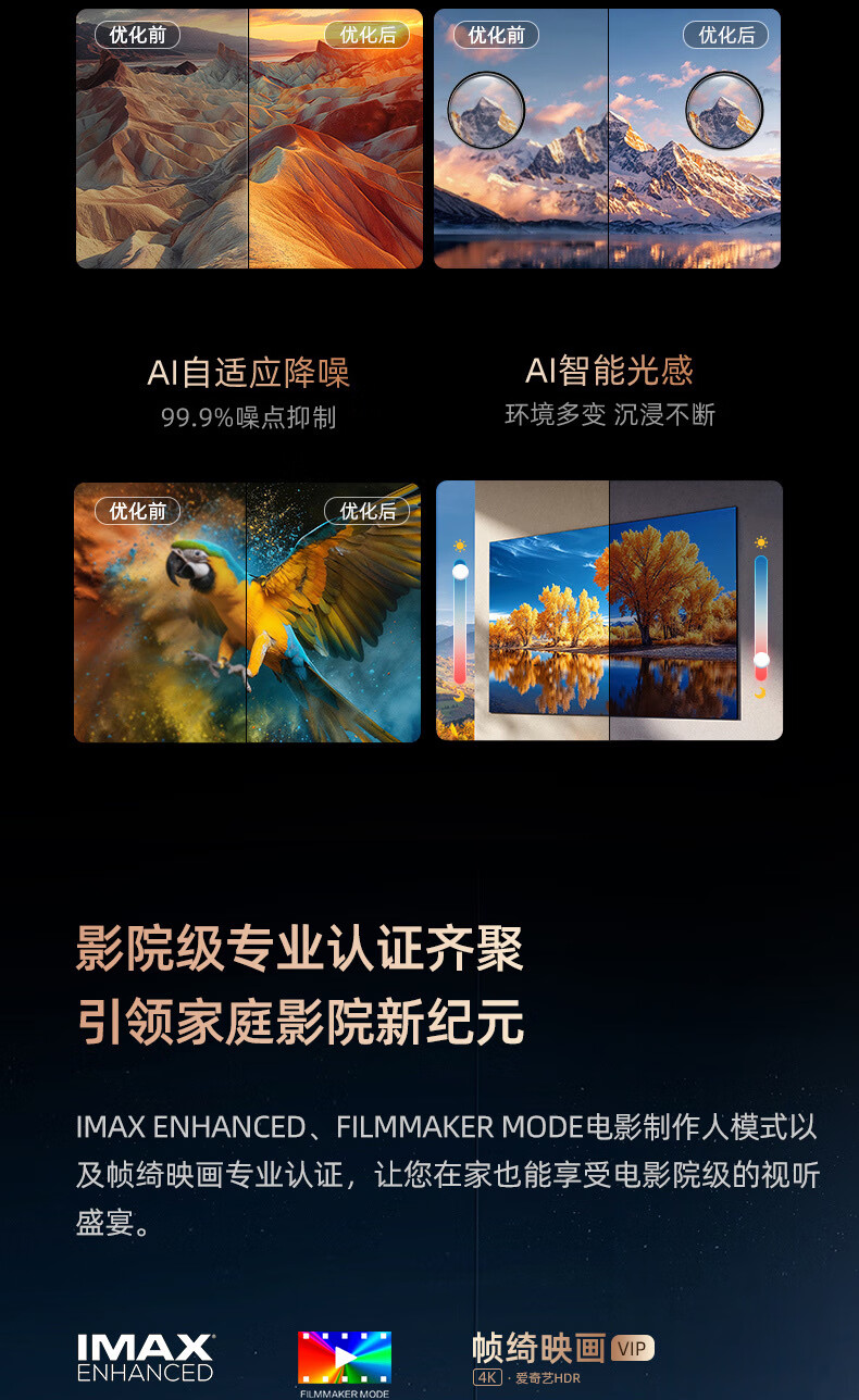 电视画面很清晰。机器质感也不错 附带音箱低音炮的很喜欢。安装师傅也很好 总体很满意。