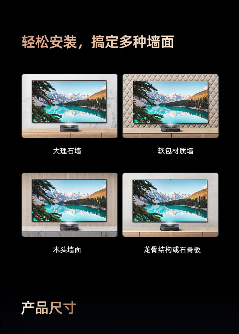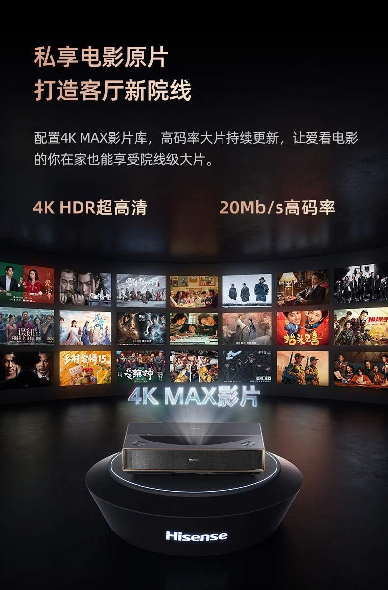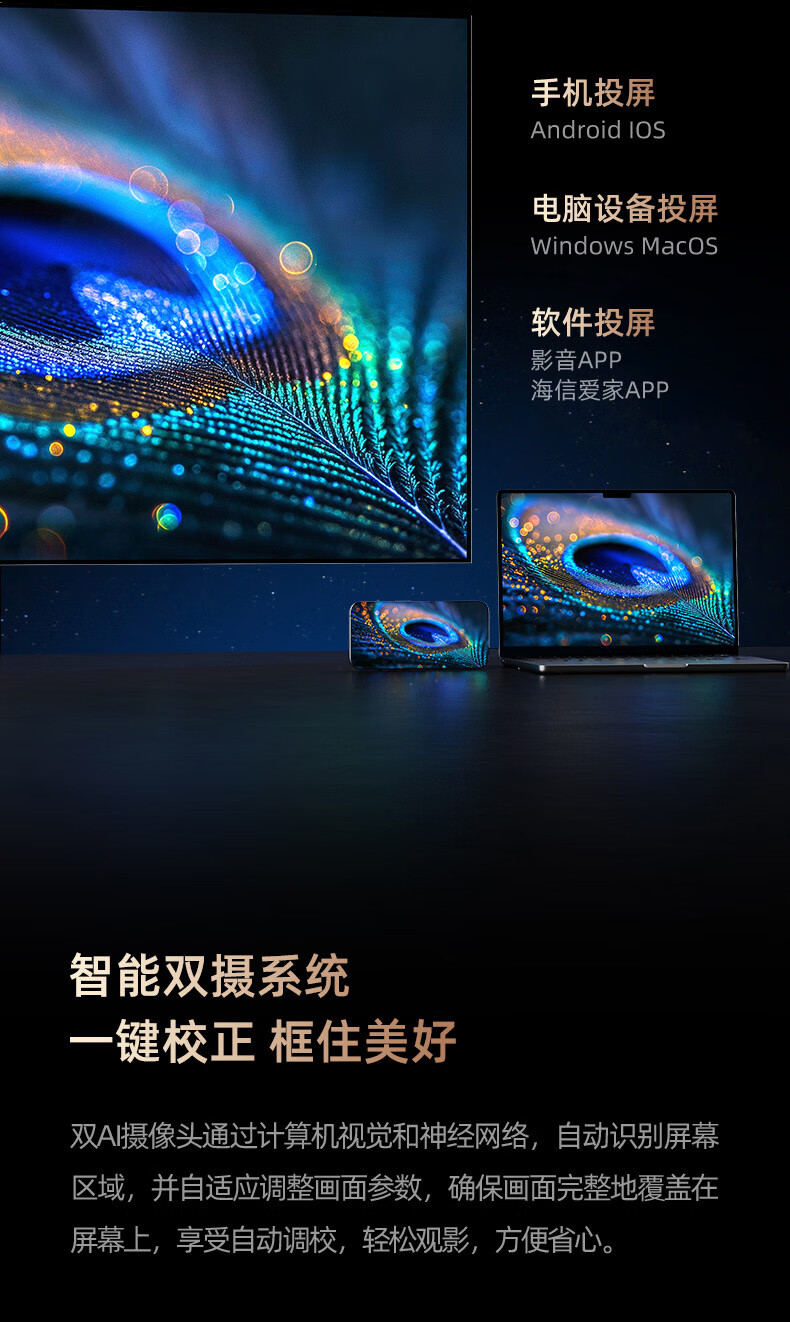 Hisense海信/UX52/P65/P60W/P80/P100/TA52/4K激光智能家庭影院投影机 菲涅尔硬屏+菲涅尔柔性屏+黑栅硬屏(尺寸价格咨询客 官方标配
