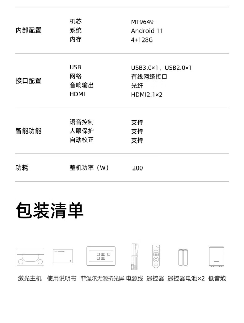 RS 20 Plus 高亮版+120英寸智能光子幕布-悬浮版(非嵌入)