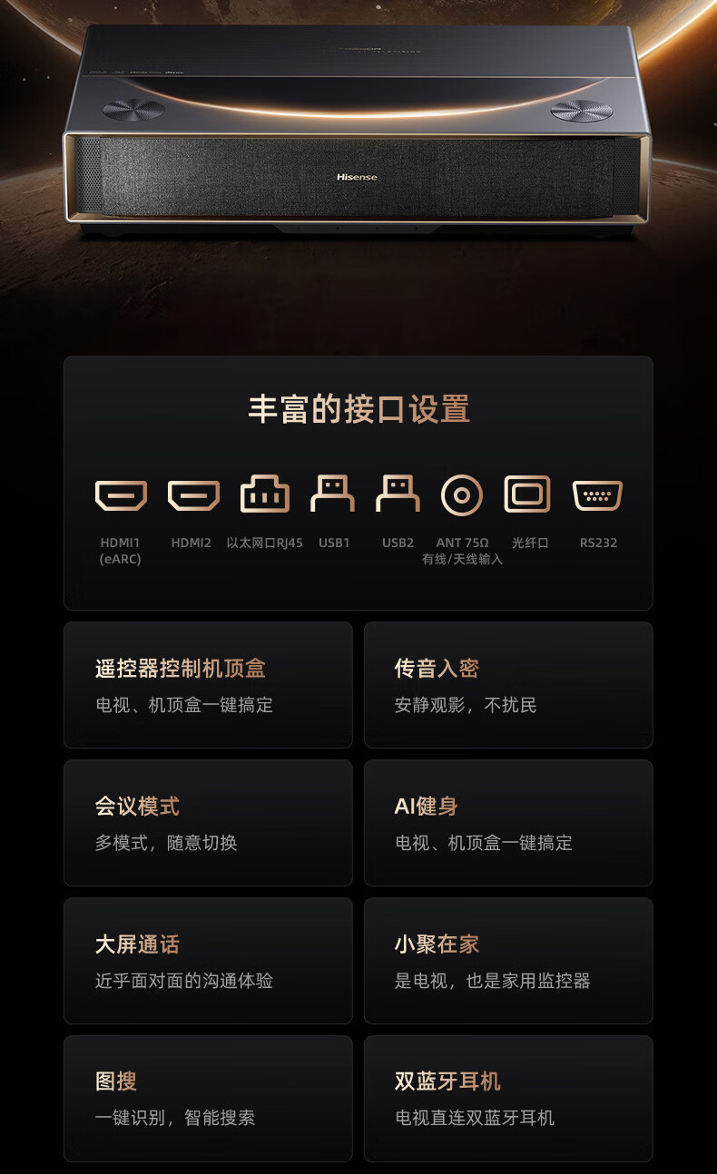 海信激光电视 星光S1Pro80/88英寸三色激光投影家庭影院护眼电影院 海信S1PRO(80英寸)