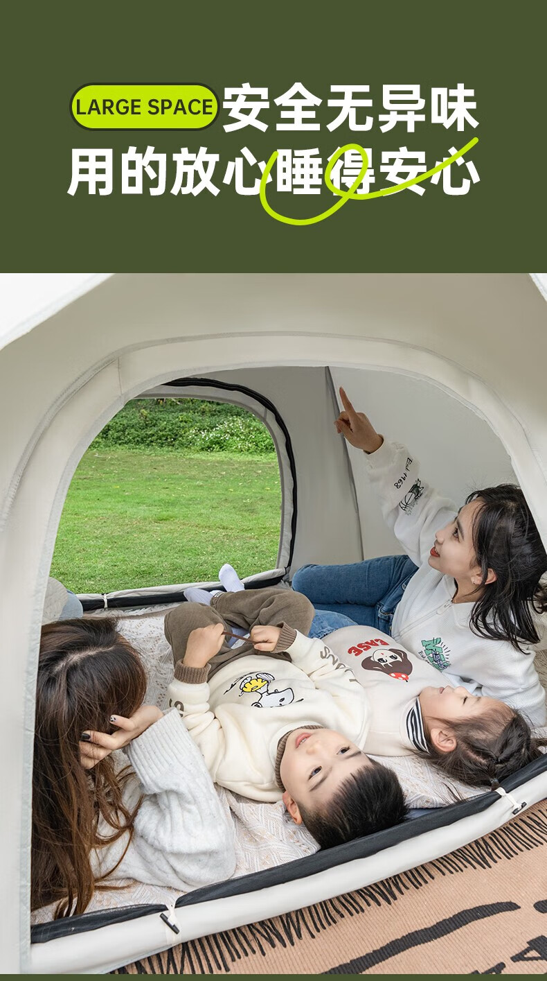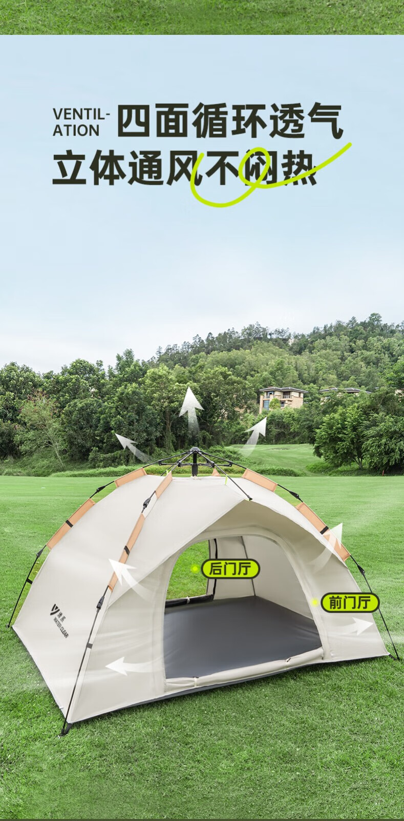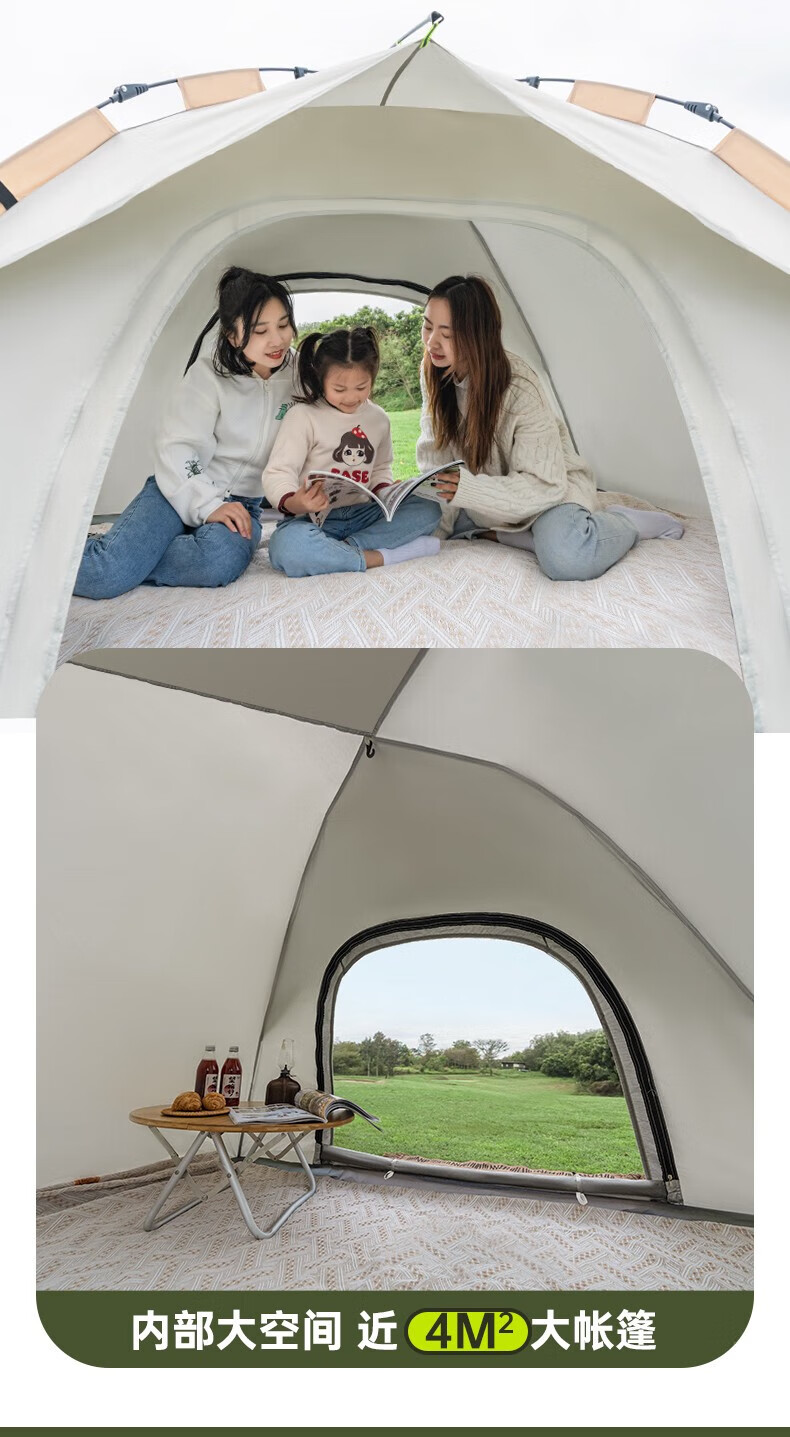 看了很多同类产品,还是觉得这个牌子的帐篷不错,而且比同类型的帐篷便宜不少,速开型,免撘建,省时省力,骨架弹性好很结实,能躺2个大人,尺寸略小一点,透气,俩门,拉链很丝滑,布料有点点小瑕疵,但不影响使用。