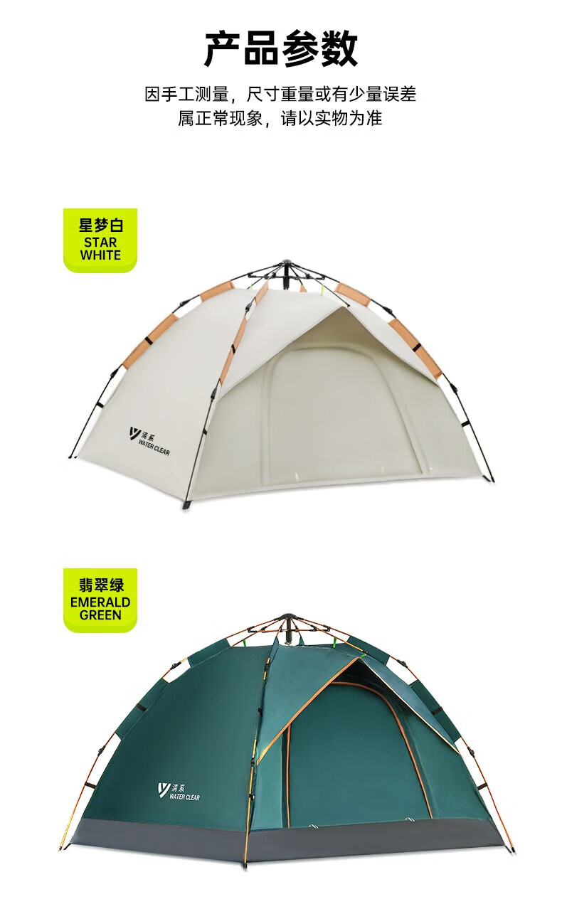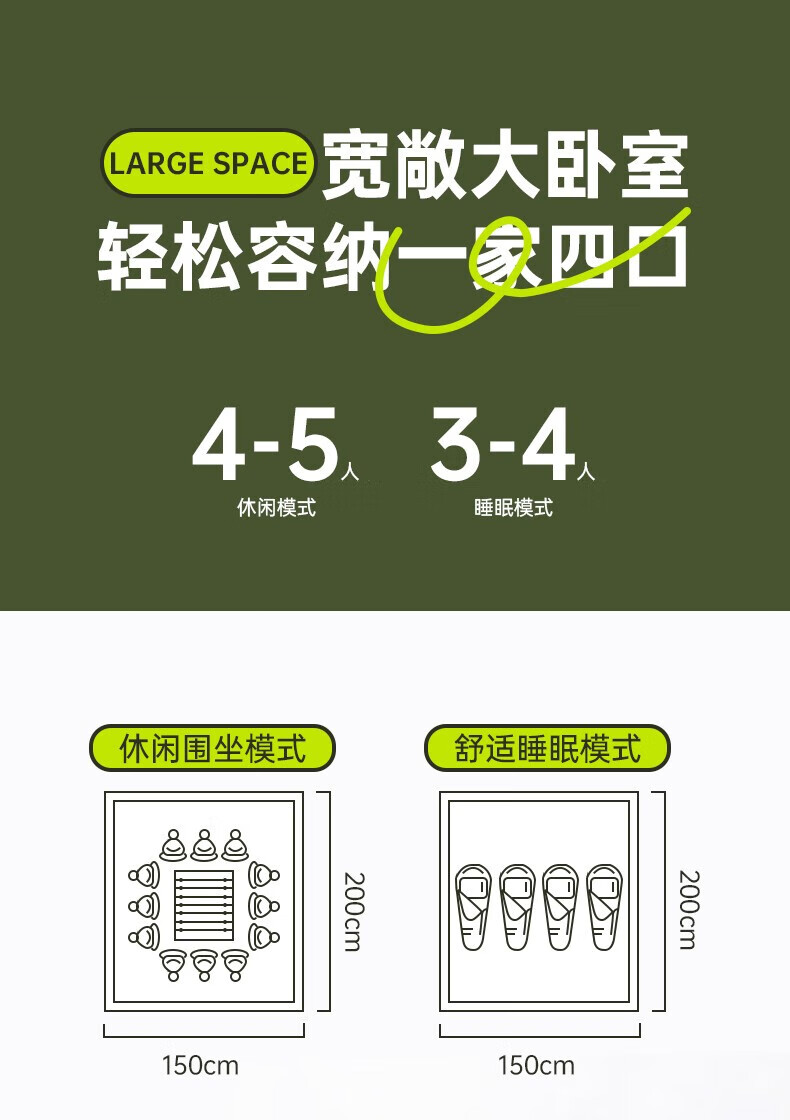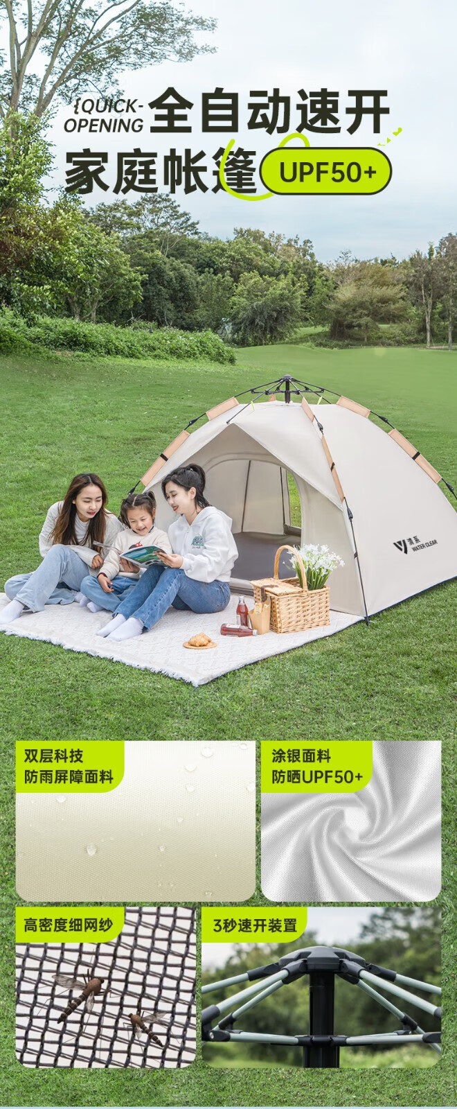 看了很多同类产品,还是觉得这个牌子的帐篷不错,而且比同类型的帐篷便宜不少,速开型,免撘建,省时省力,骨架弹性好很结实,能躺2个大人,尺寸略小一点,透气,俩门,拉链很丝滑,布料有点点小瑕疵,但不影响使用。