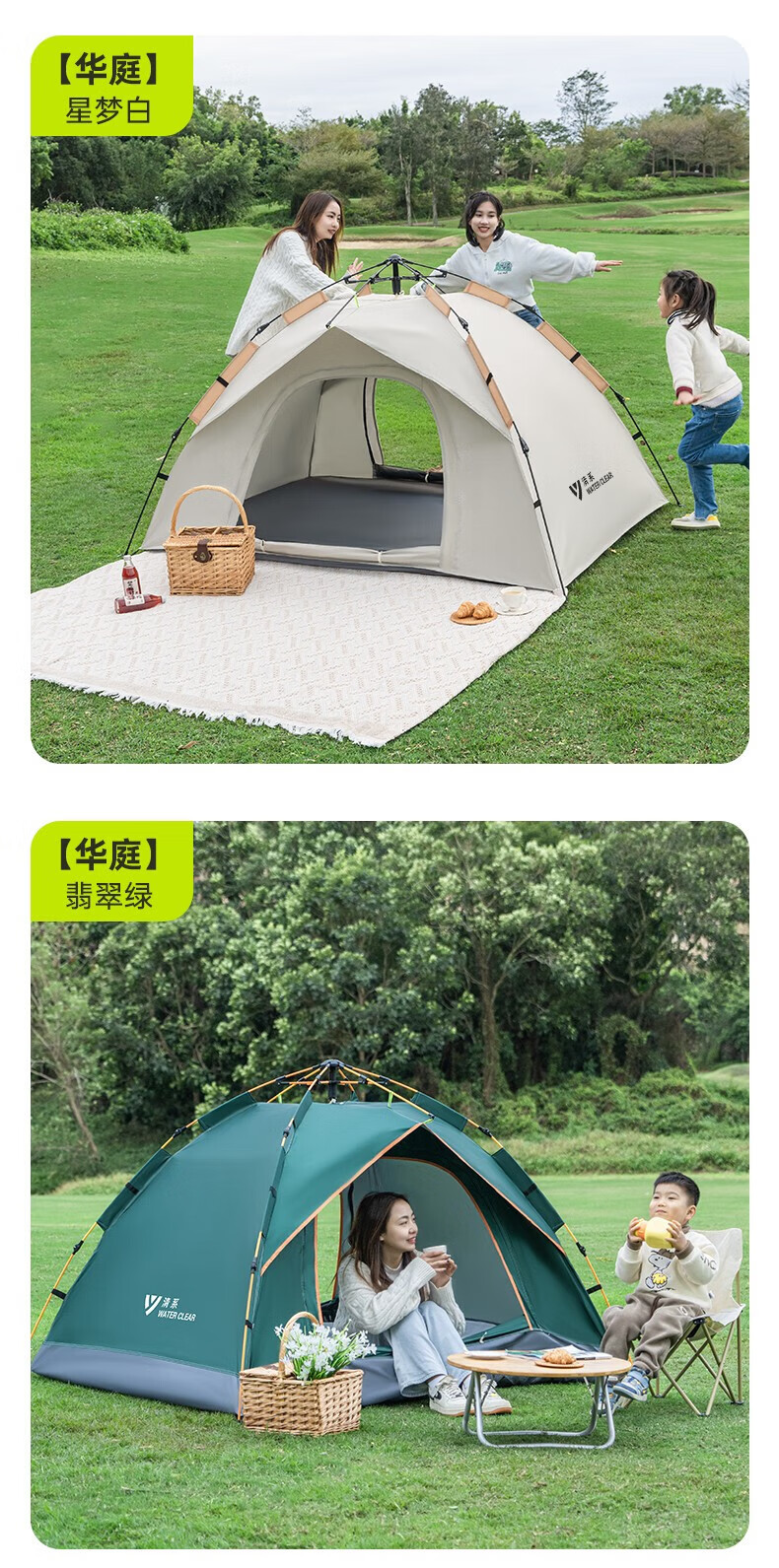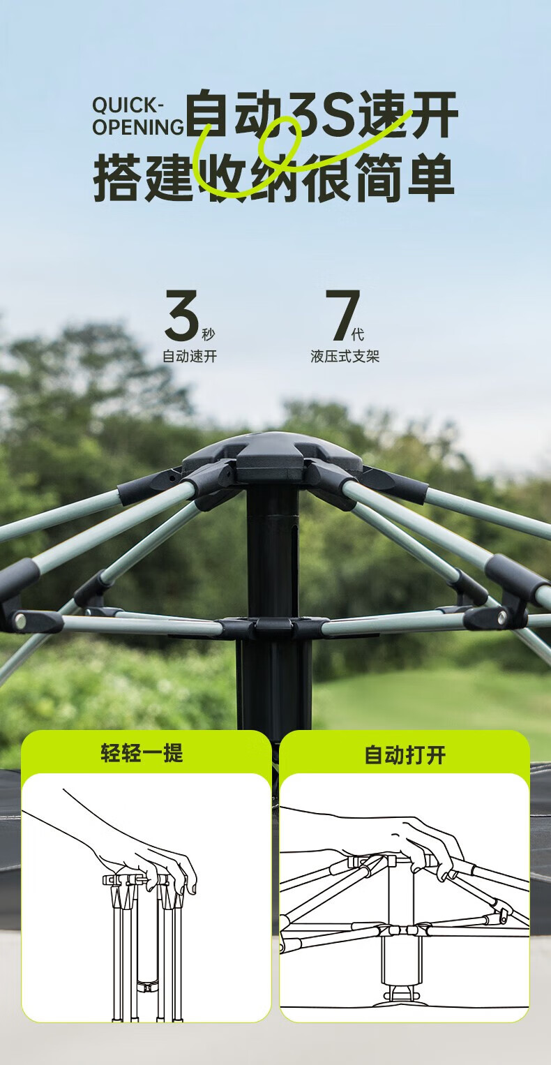 清系帐篷全自动公园儿童防晒户外露营用品便携式折叠2-3人野外露营 【福利款】一门一窗款【森林绿】