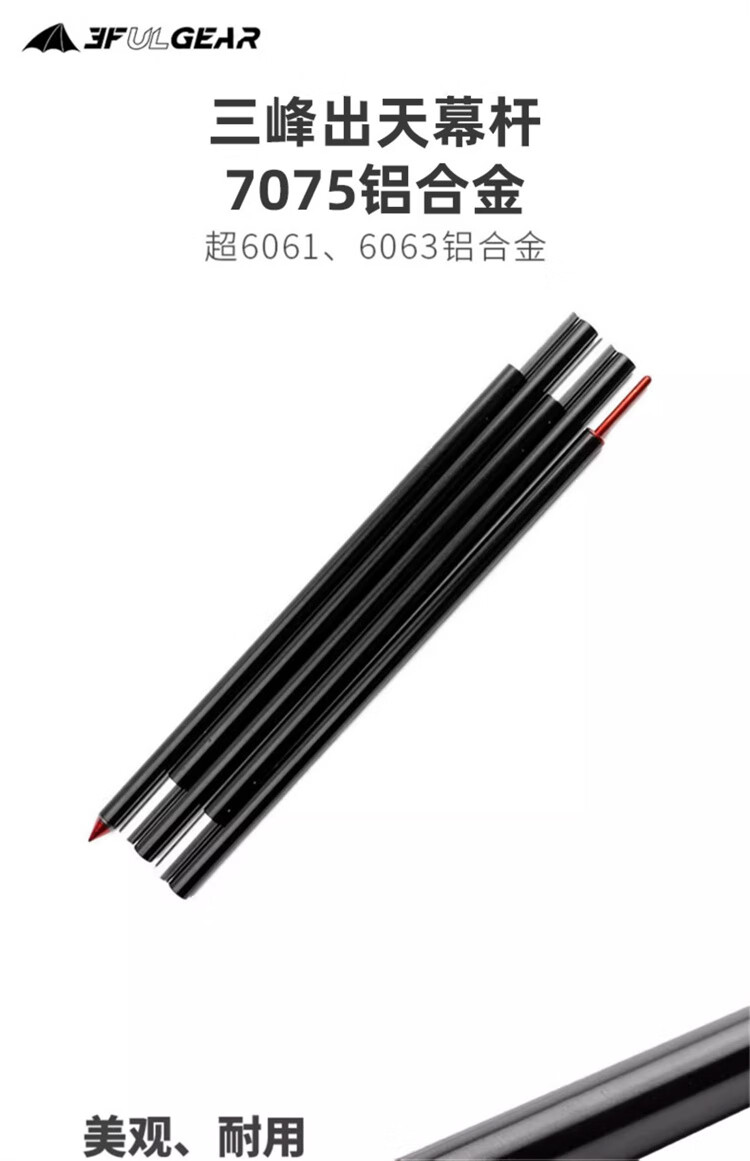 三峰出 7075航空铝合金天幕杆16/19/25/28mm撑杆加厚加粗2米/2.4米高度 铁杆(25mm*2.4m)2根
