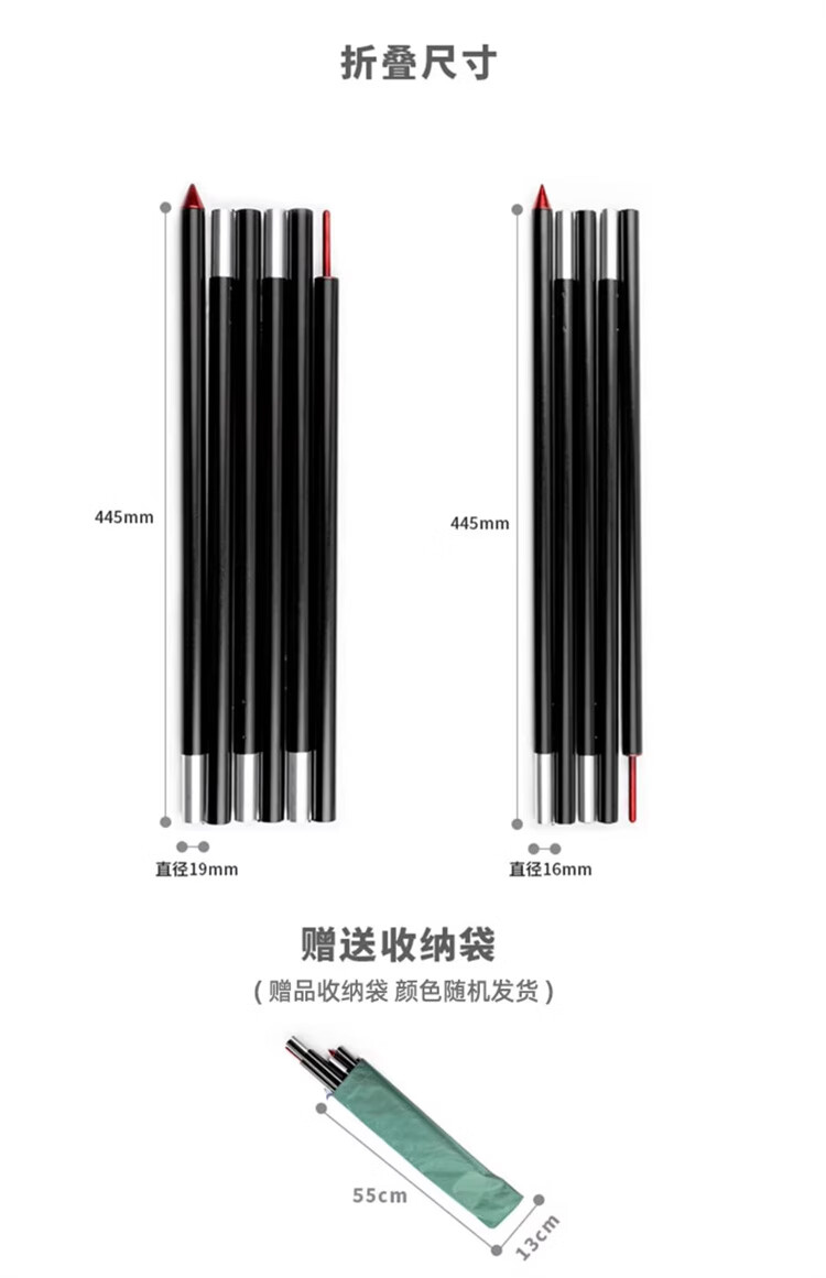 Naturehike挪客天幕杆户外露营帐篷门厅杆高强加厚一杆多用天幕支撑杆配件 黑色/2.1米/铁【2根装】