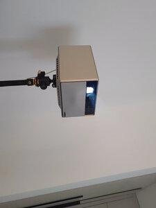 用的是商家送的壁挂支架,这是白天视频效果,由于视频时间有限,还有一张拉了窗帘的视频展示不出来。很清晰,这是昨天帮我安装电动幕布师傅说的,效果真好