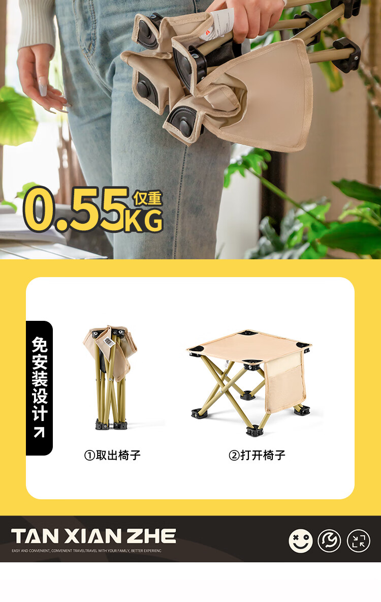探险者的这款折叠小凳子很不错,质量和质感都很好,轻便小巧,承重性好,收纳方便,品牌质量有保障,价格不贵,性价比很高,物流也很快,好评!