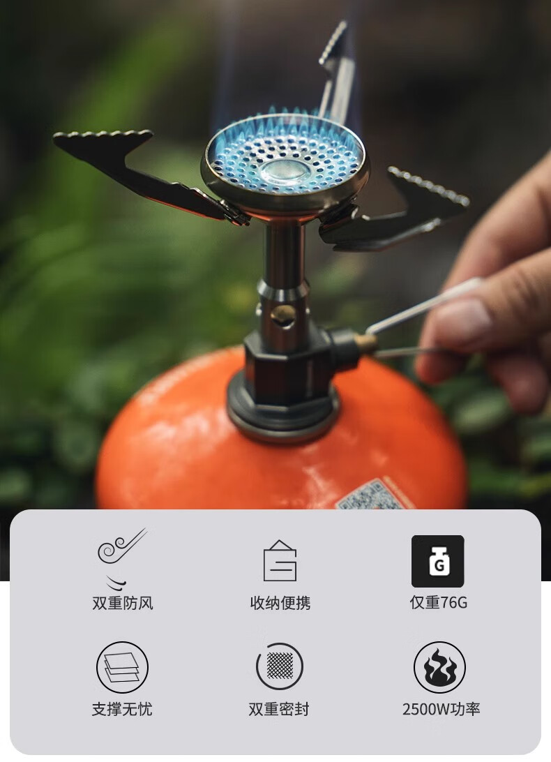 北岳卡式炉户外野营炉具烧水煮茶炉头 双用款+230g扁气*2+防风圈
