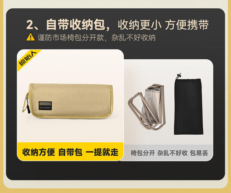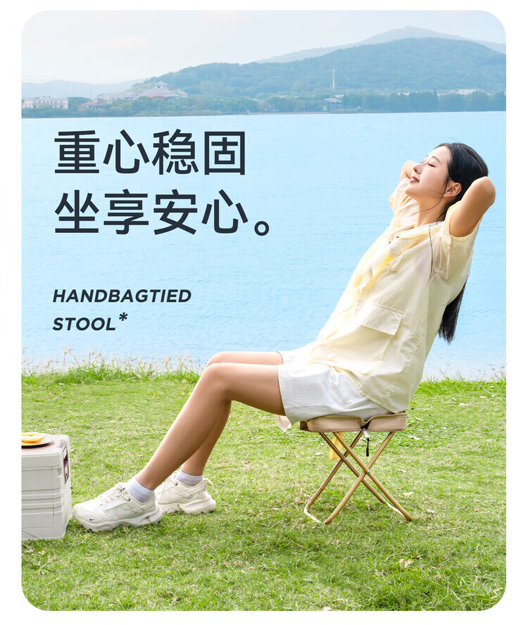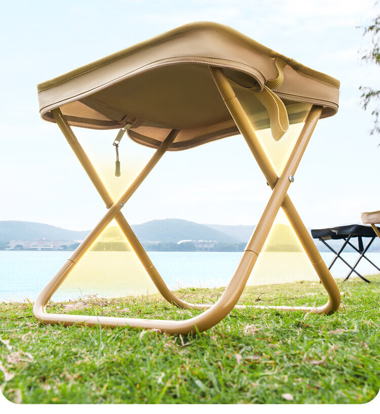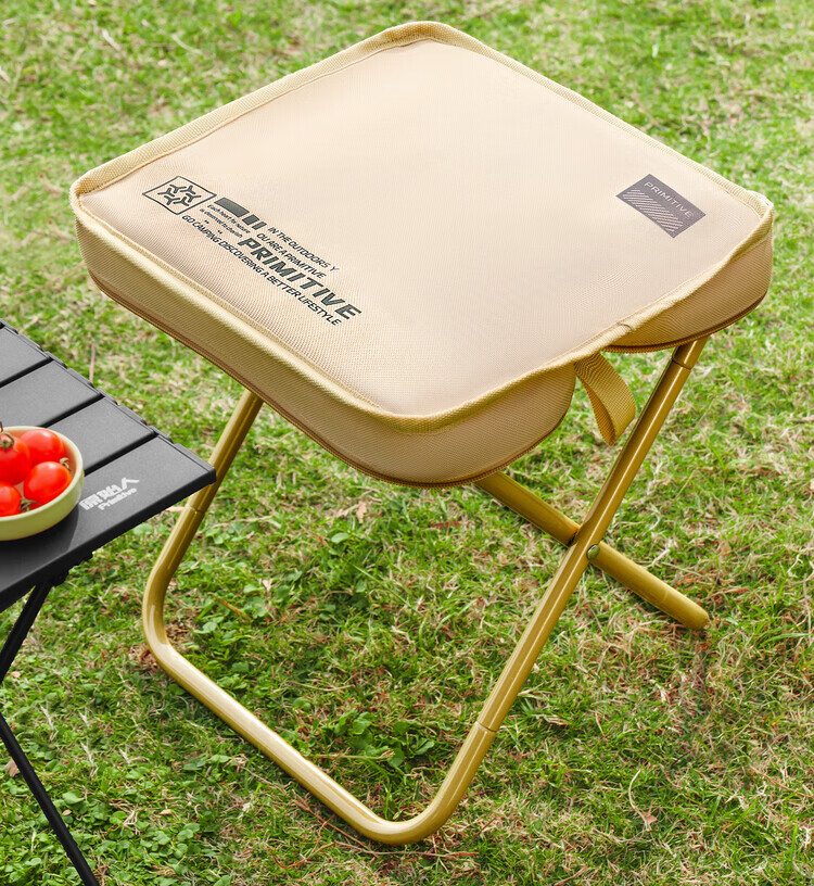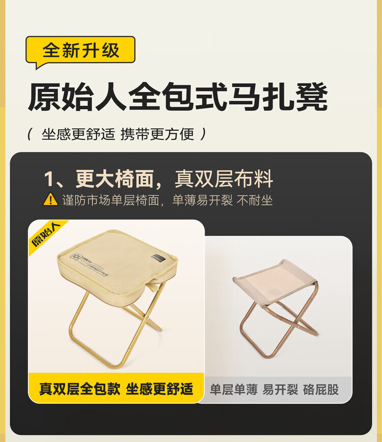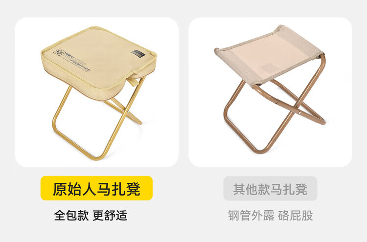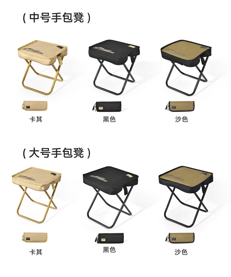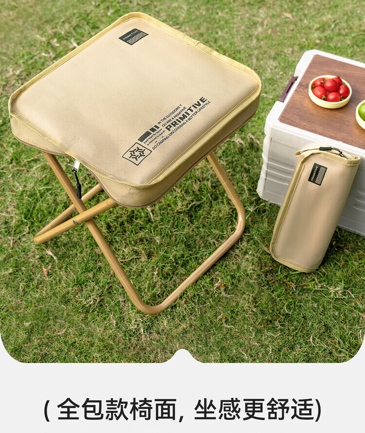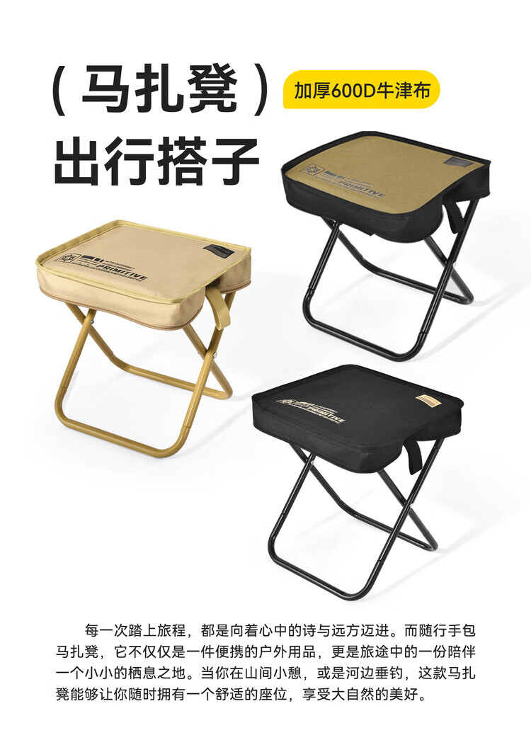原始人折叠凳户外椅子马扎露营便携钓鱼野餐笔袋小板凳火车高铁无座神器 磨砂黑中号-轻巧便携桌