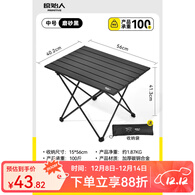 原始人 户外折叠桌铝合金便携式蛋卷桌野餐桌子露营桌椅套装野炊装备 【中号】黑色折叠桌(配收纳袋)