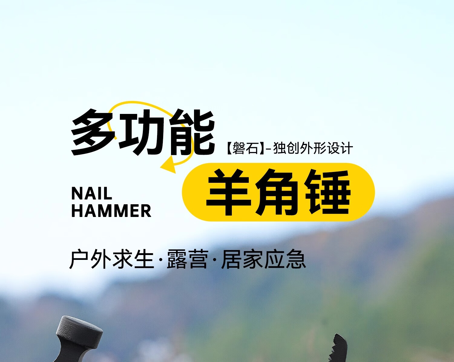原始人户外多功能羊角锤子帐篷地钉锤户外露营工具地锤求生配件 磐石灰(送收纳袋)