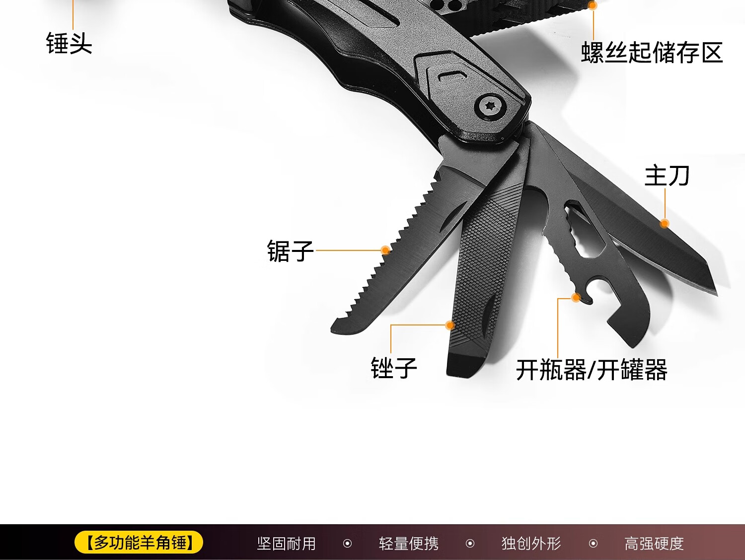 现在是露营季 大家都出去露营 露营怎么能没有一把合手 功能齐全的 综合性工具 那就是这把多功能综合工具 有锤子 起子 剪刀 等一系列功能 十分方便好用。