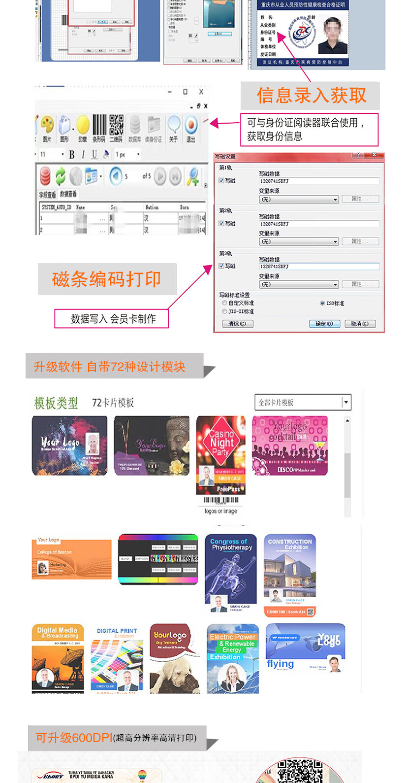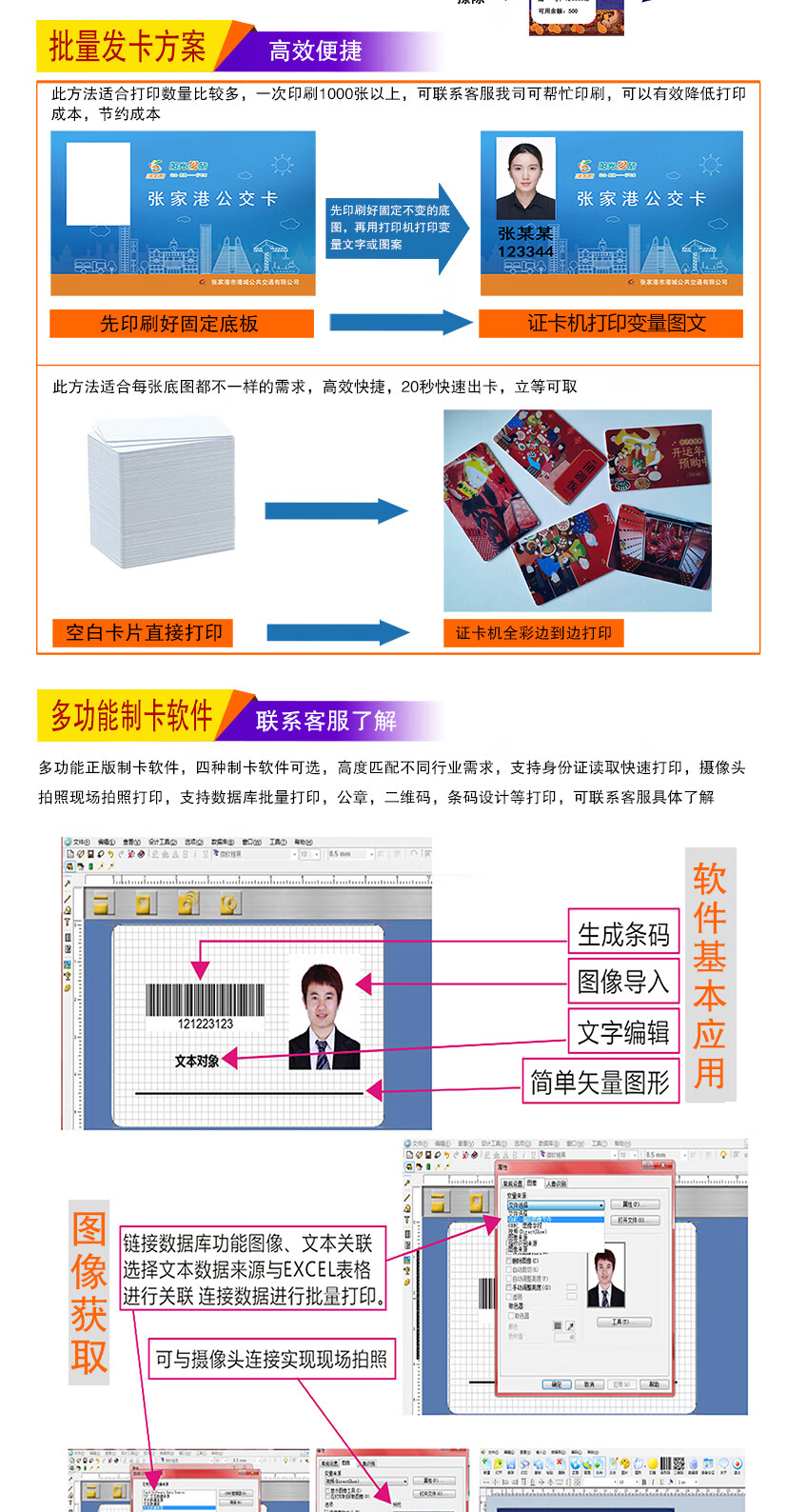 能用公司的人事系统直接打印很方便 还可以批量打印,一次性放100张卡,送了耗材和卡片。技术服务很好!