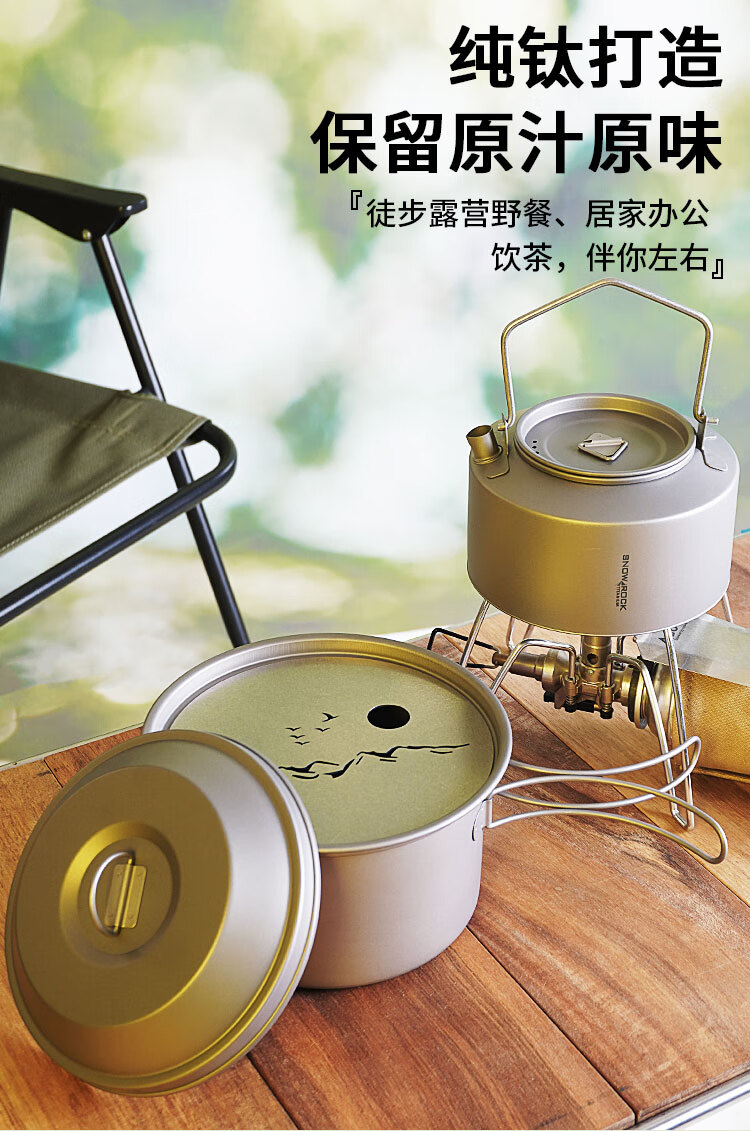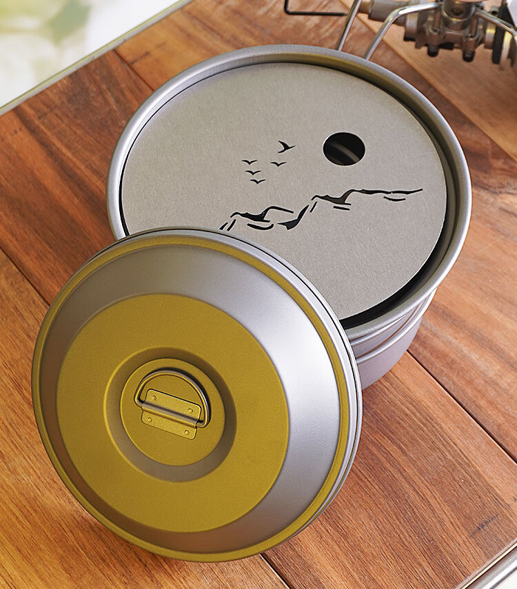 必唯(BOUNDLESS VOYAGE)必唯纯钛户外蒸锅2.2L汤锅轻量便携露营火锅野炊钛锅野营锅具炊具 Ti2111C 2.2L汤锅+2L蒸隔