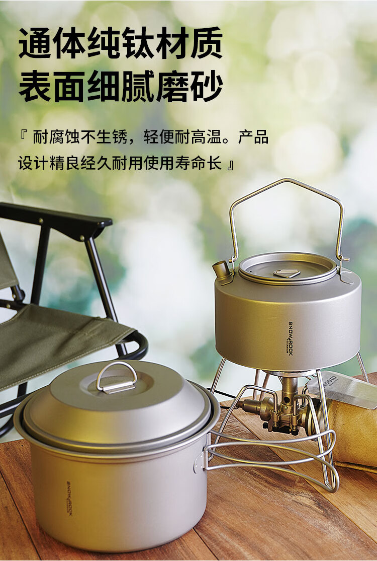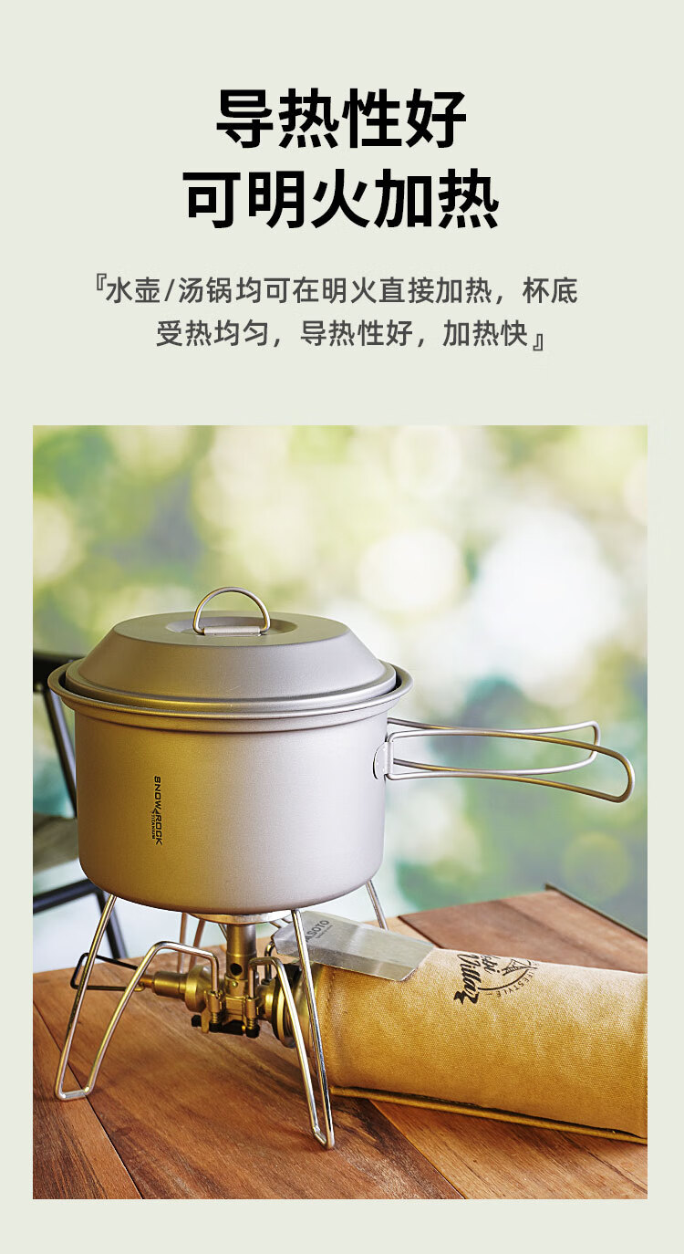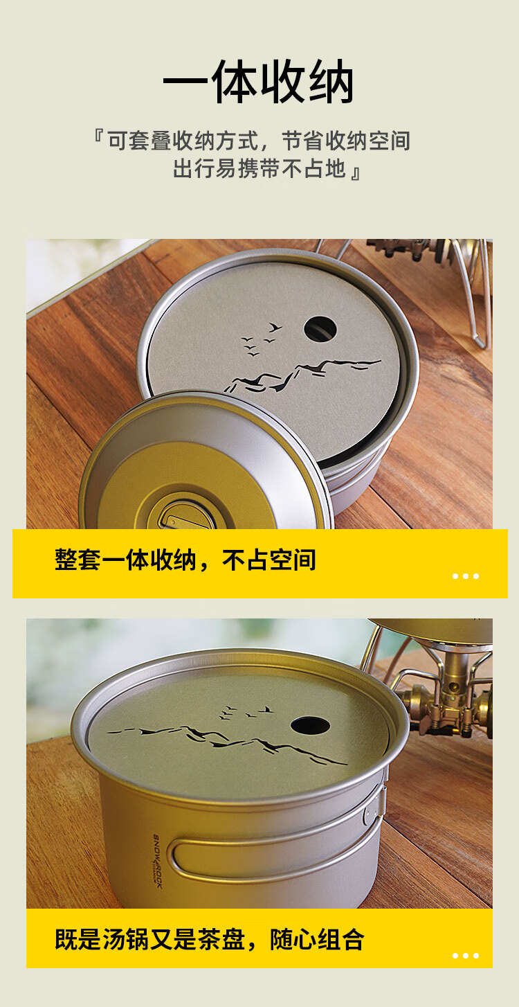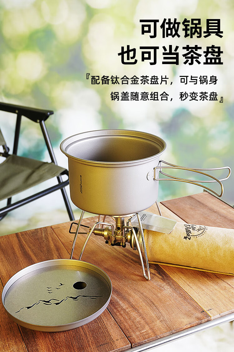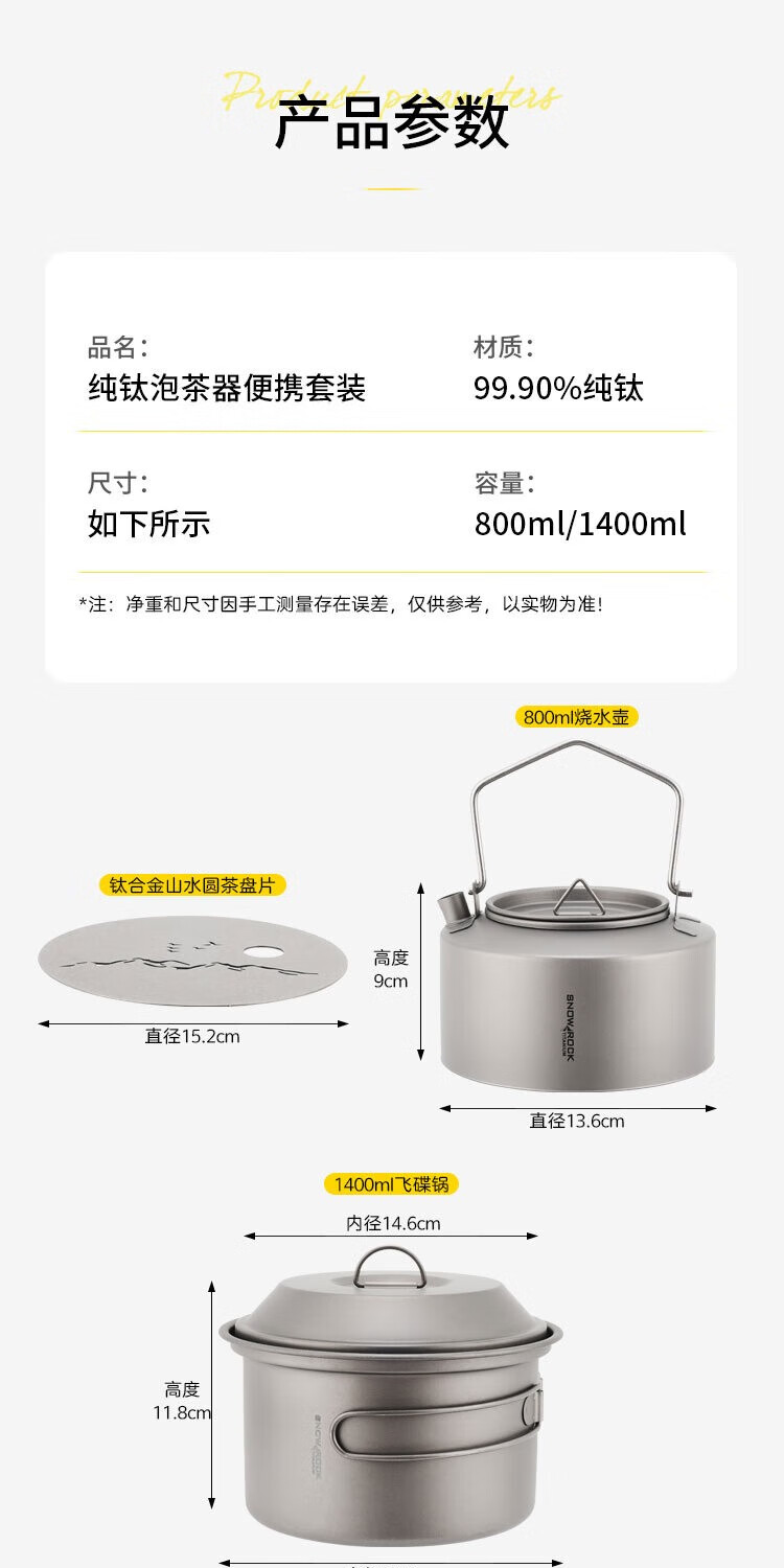 SNOW ROCK英迪纯钛户外露营轻便1.4L飞碟锅+圆茶盘片+800ml烧水壶 浅灰色 正品保障