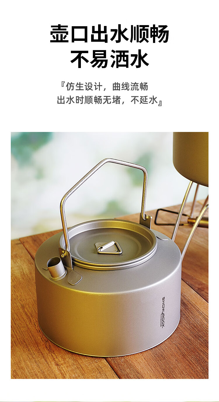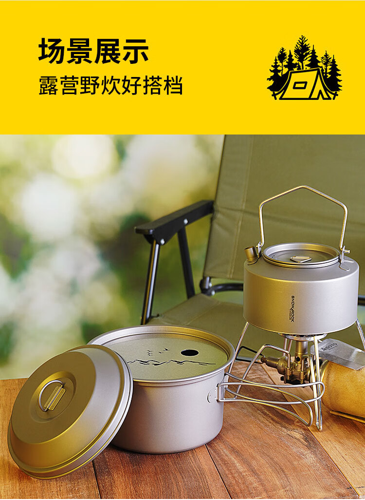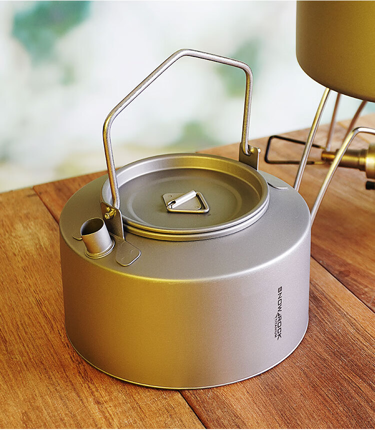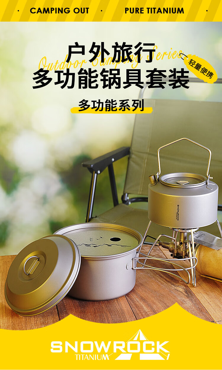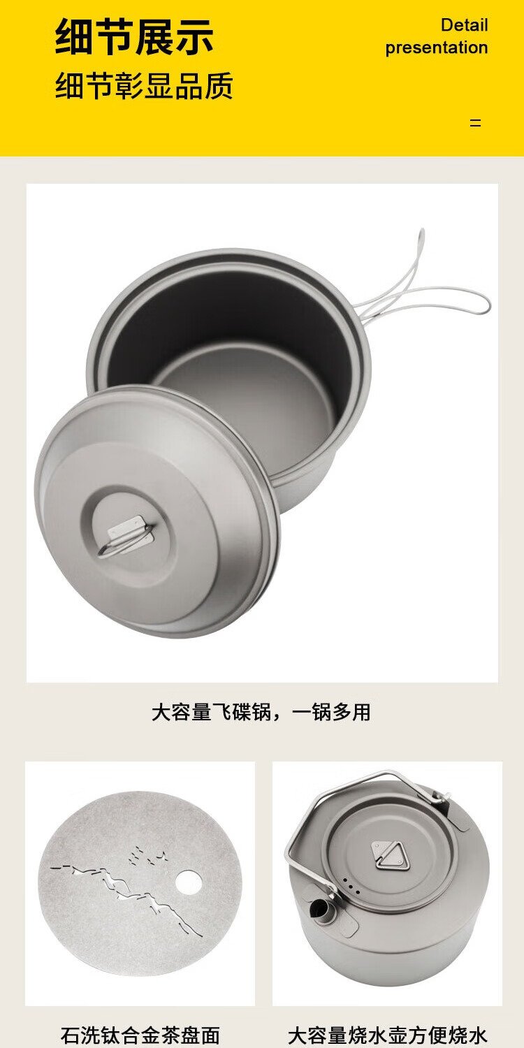 SNOW ROCK英迪纯钛户外露营轻便1.4L飞碟锅+圆茶盘片+800ml烧水壶 浅灰色 正品保障
