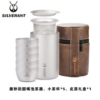 SILVERANT银蚁纯钛泡茶器套装户外旅行茶具冰花钛茶壶功夫茶露营便捷收纳办公家用简约皮套包装定制 纯钛皮套圆口泡茶器(一壶五杯)