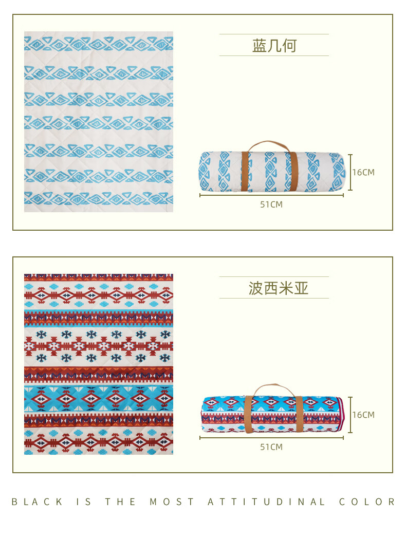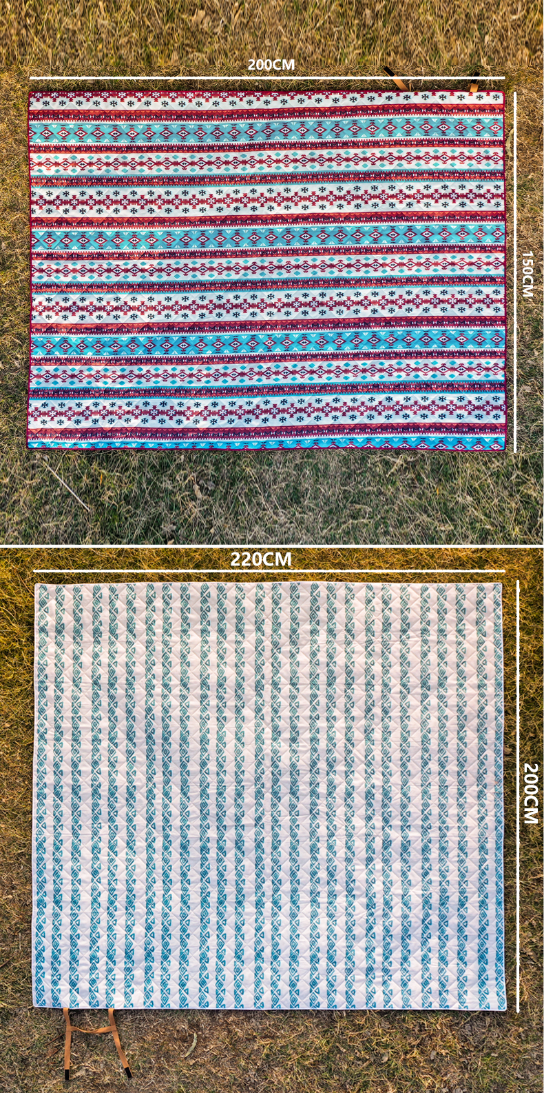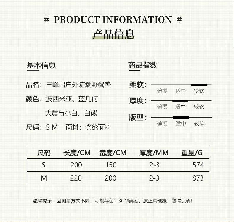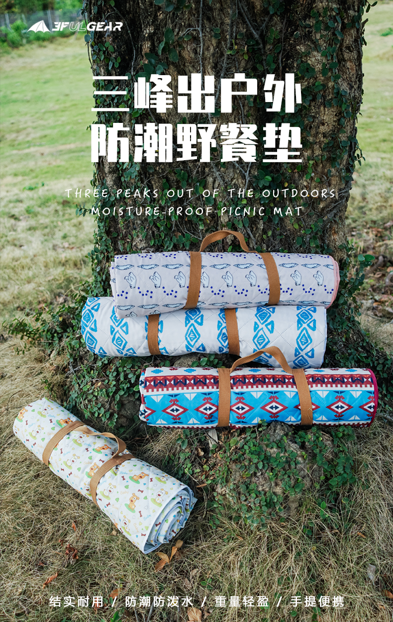 三峰出三峰户外野餐垫防潮防水野炊郊游草坪垫子野餐布露营垫户外毯子 波西米亚【1.5米*2米】