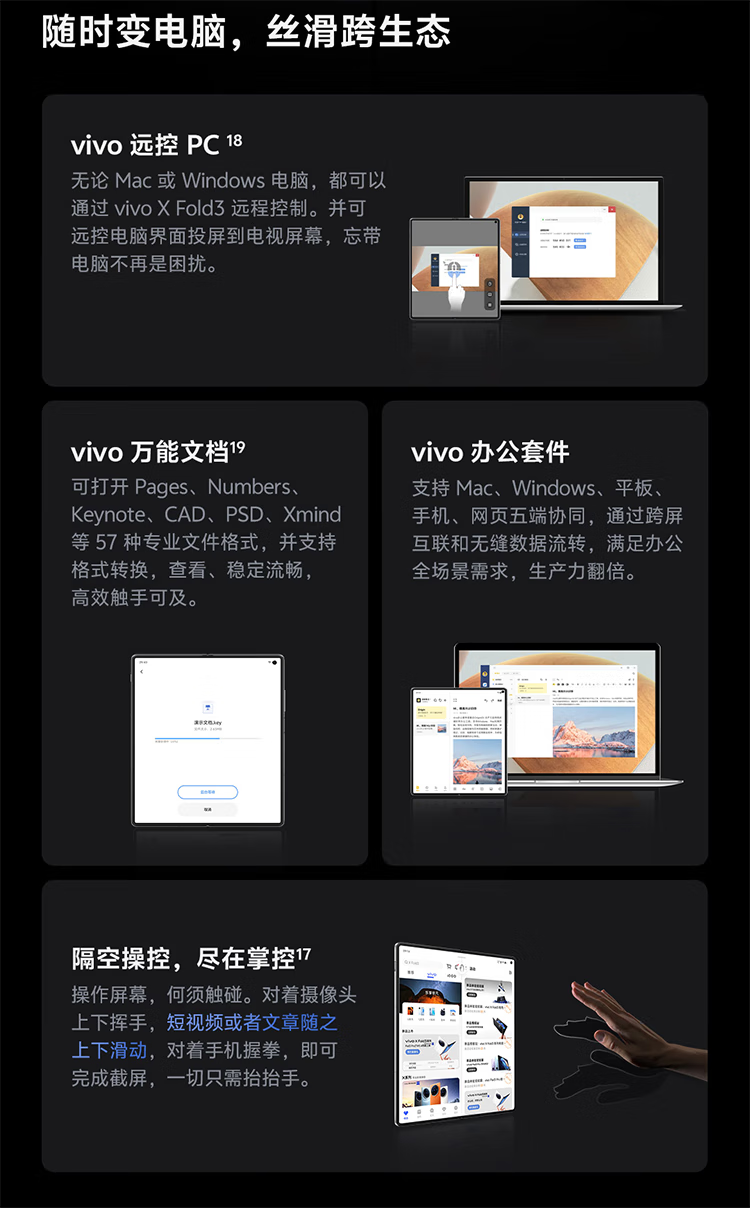 vivo X Fold3 折叠屏 5G手机 【分期免息】 薄翼黑 16GB+256GB【12期免息】