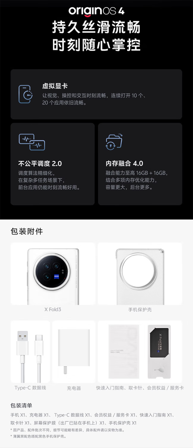 vivo 选(24)期免息 X Fold3 5G折叠屏手机 超轻薄 5500mAh蓝海电池 超可靠铠羽架构 X Fold系列 薄翼黑【12G+256GB全网通】 套餐三【享(12)期免息】