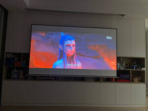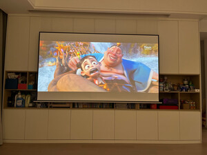 幕布装好了,可以和爱普生投影仪联动,免得来回按遥控,效果很好,而且还有氛围灯,观影不刺眼,开了沙发那边的照明灯,效果也没问题,孩子看电影很高兴,以后可以直接在家里看电影了。总之,爱普生投影仪和幕布都买的比较值,希望一直好用。