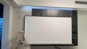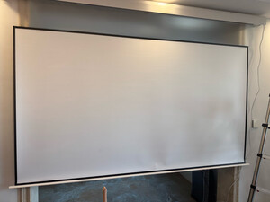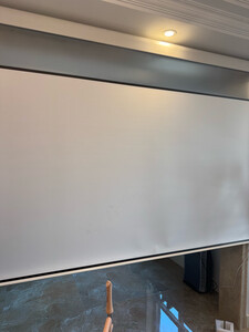 100寸的幕布质量非常好。可以和投影仪联动,开机自动识别到。不用的时候收起来,用的时候开机就自动打开。清晰度很高,基本上和电视的效果差不多了。自己折腾了一半天的时间自己安装的。在客厅的灯带里面接了电。随着灯带里面的开关打开就可以使用。