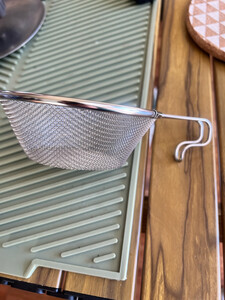 这个小碗跟滤网是一样大小的 比较适合于碗的造型设计 很方便 自己还可以挂起来晾着所以露营用品其实居家使用起来设计也是非常合理的。