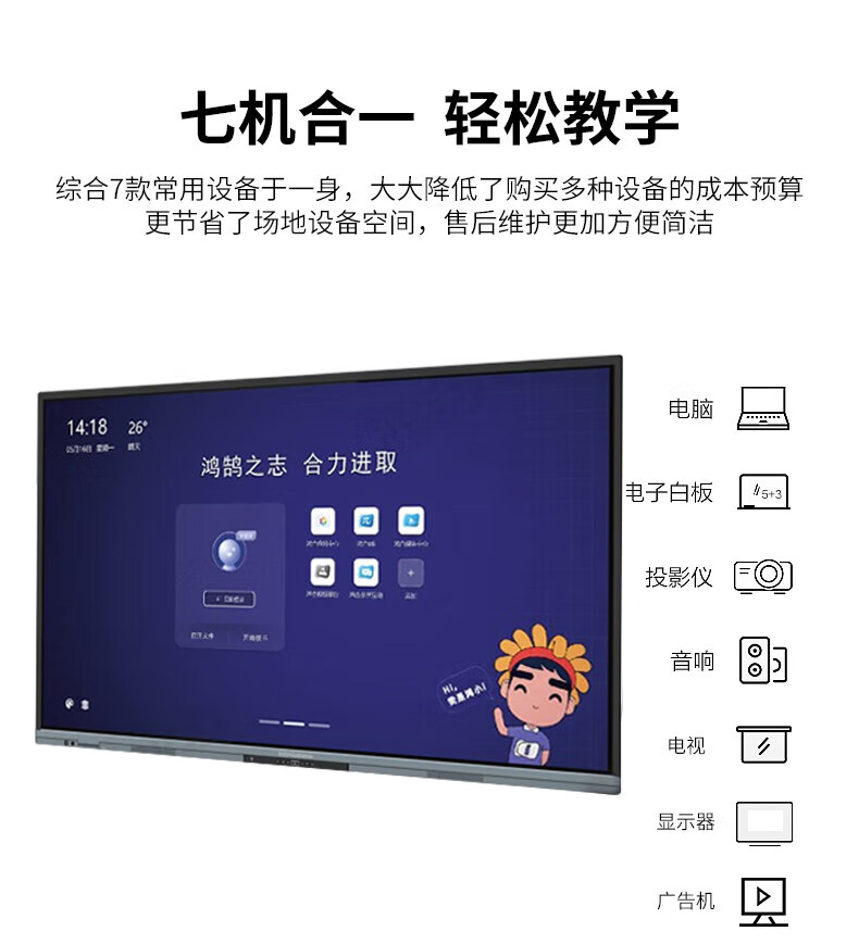 鸿合(HiteVision)教学一体机培训会议平板智能触摸屏多媒体电子白板 JA-86英寸双系统8+256g【壁挂架】