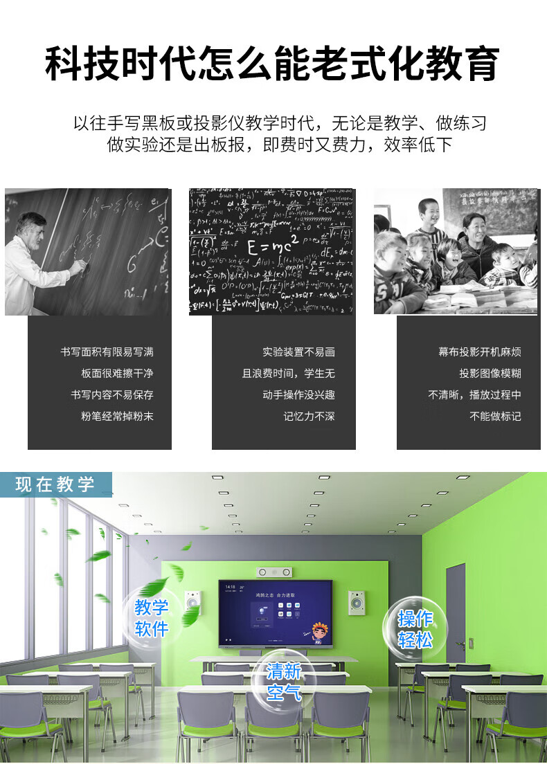 鸿合86/98英寸 教学一体机智慧黑板 交互式电子白板教学会议平板一体机 (含OPS 含侧板 含安装) 86英寸智慧黑板HB-H831D