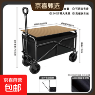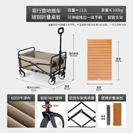 【采销推荐】户外露营车可折叠推车超大手拉车拖车摆摊买菜购物车 5寸标准款+木色折叠桌板,曜黑