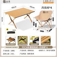 北乐户外露营蛋卷桌折叠桌椅套装便携式摆摊野营野炊野餐桌子装备全套 90CM蛋卷桌木纹+月亮椅*4