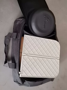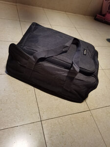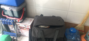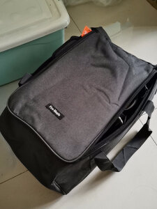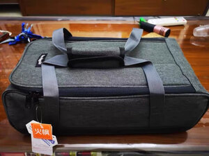 收纳袋材料挺厚实做工不错,可收纳空间挺大的,可以将气炉、水煲、四罐一箱气放进去还有容间,好评!