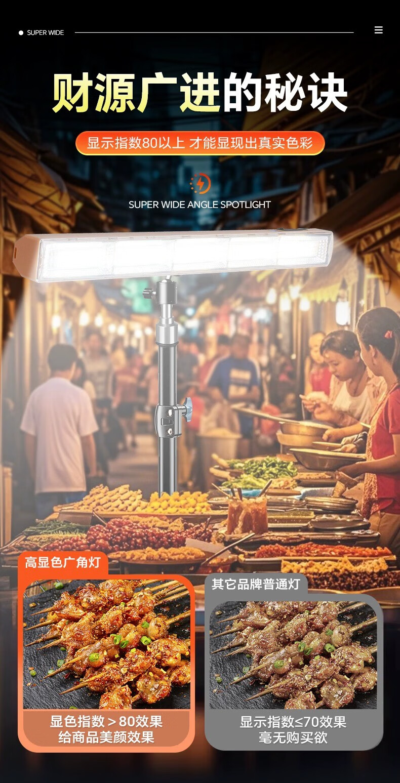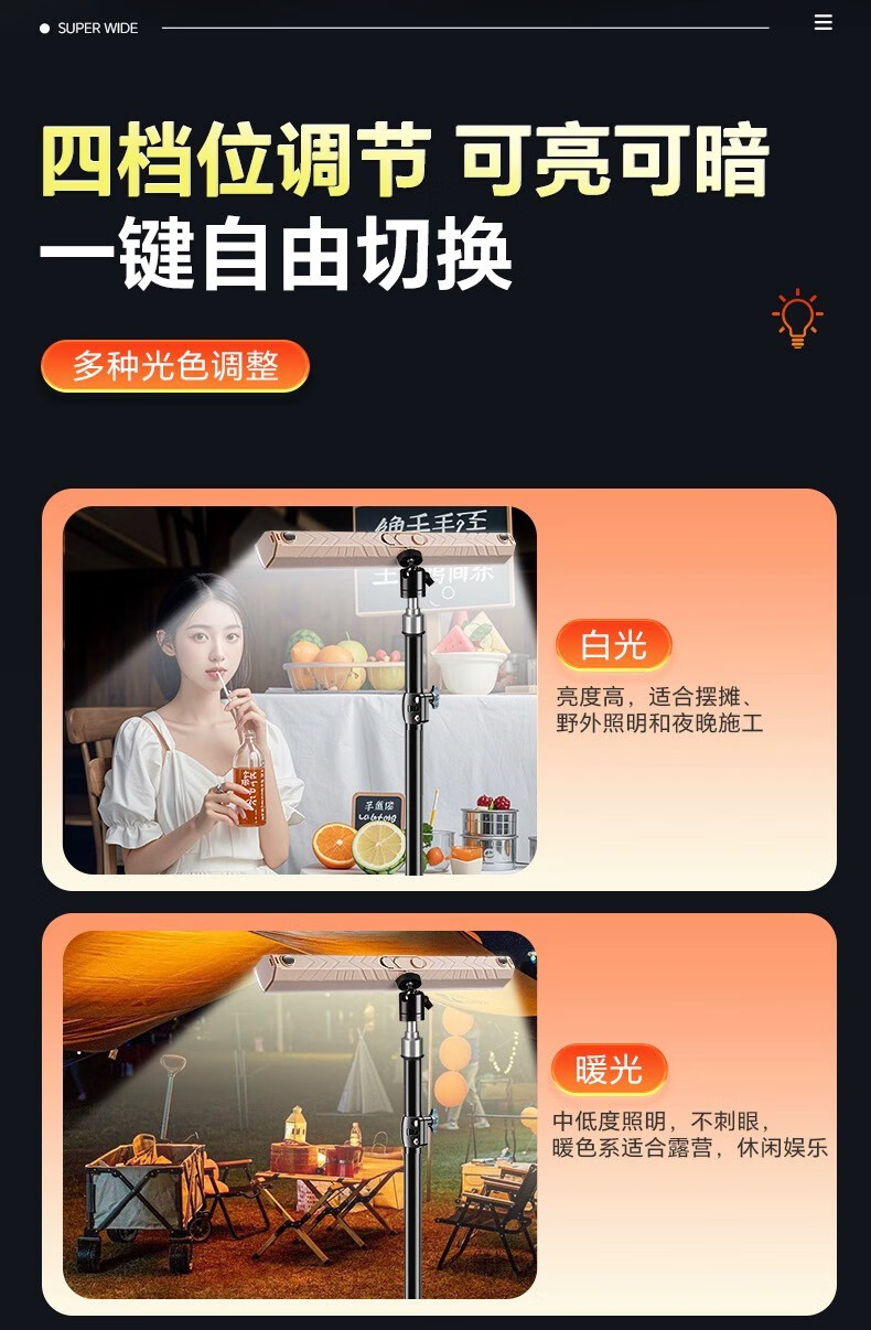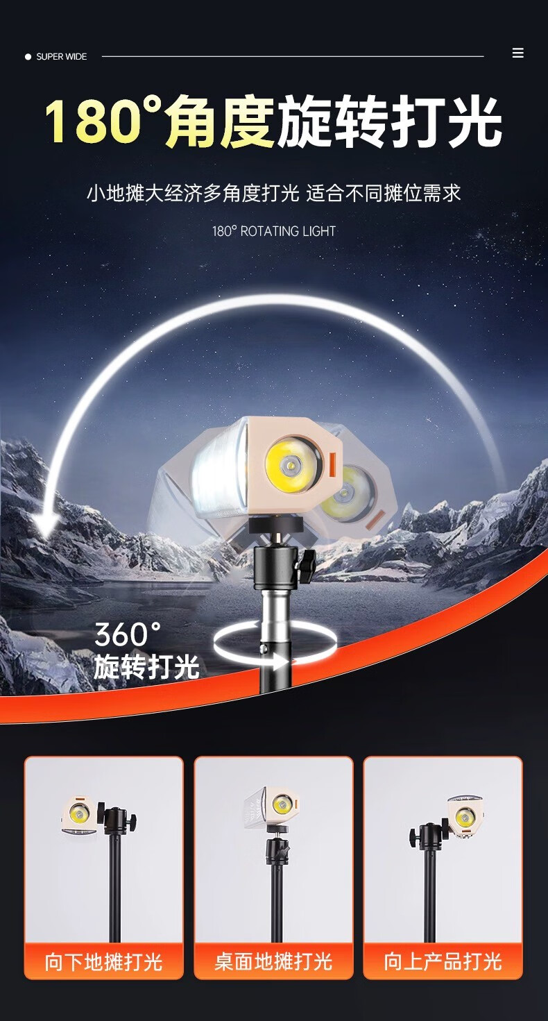 给老爸买的摆摊灯,他说这是买过最实用的!灯够亮,卖水果时照得水果新鲜又好看,顾客都愿意多停留。磁吸在摊位的铁架子上,安装拆卸都快,收摊不用费劲拆。续航也长,充一次电能用 4 个晚上,老爸再也不用每天带着充电器去摆摊,直夸我会买!