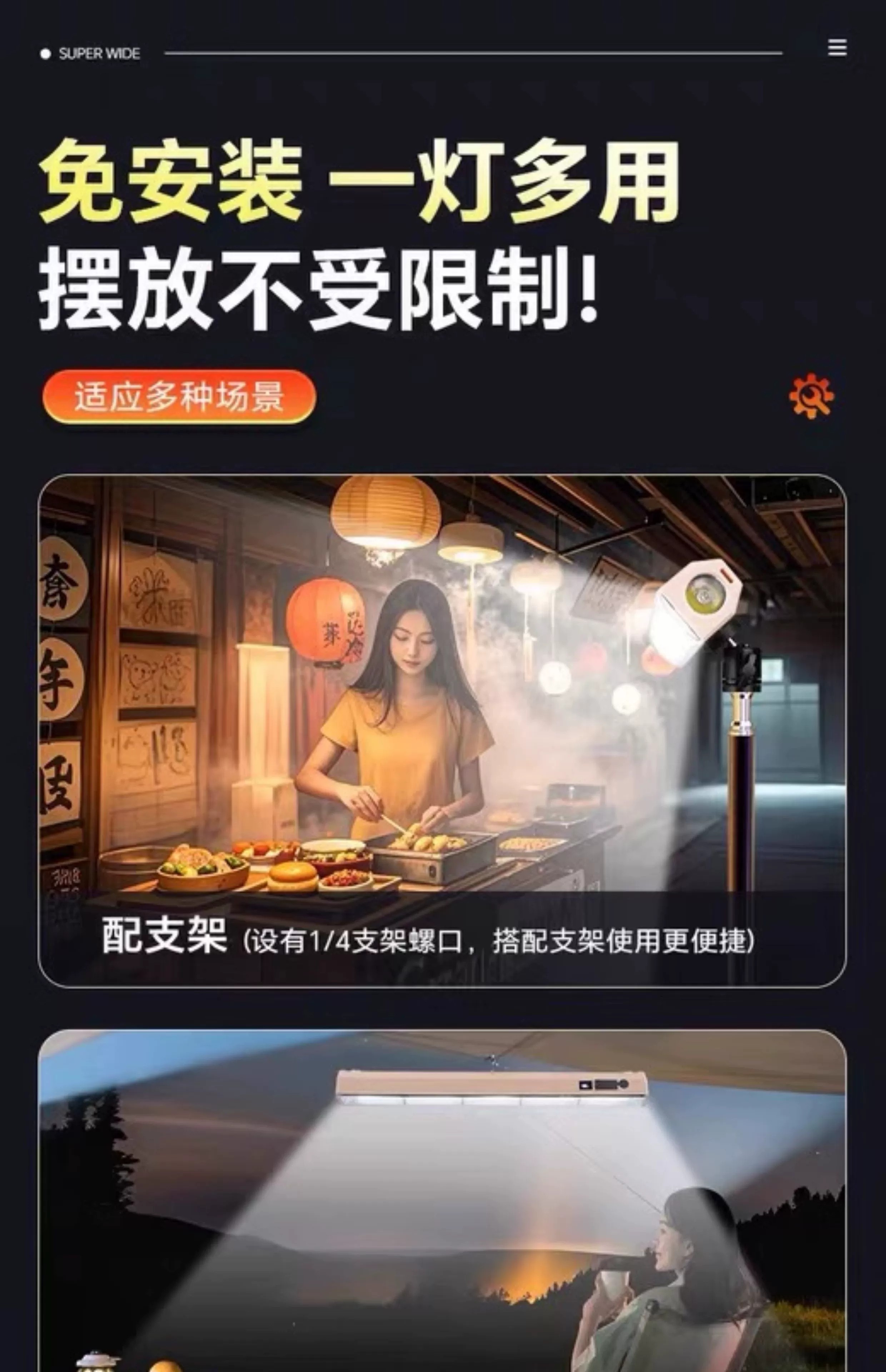 买给露营用的,这灯真的超出预期!磁吸设计太方便了,随便吸在帐篷杆、天幕支架上都稳,不用额外找地方挂。LED 亮度够足,调至最亮档照亮整个露营地没问题,续航更惊喜,周末两天露营每天用 3-4 小时,回来还剩两格电,完全不用慌没电。后来摆摊也带去过,挂在摊位上方,商品看得清清楚楚,顾客都说我这灯比旁边几家亮,太值了!