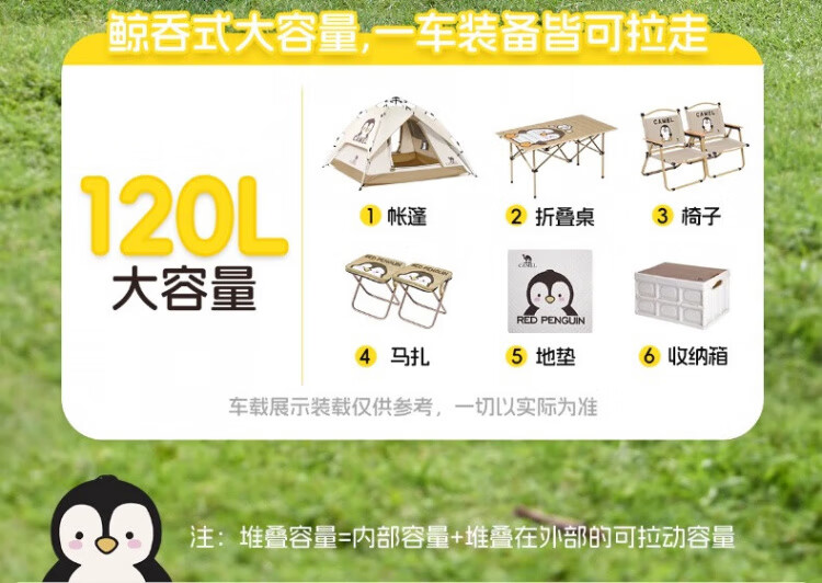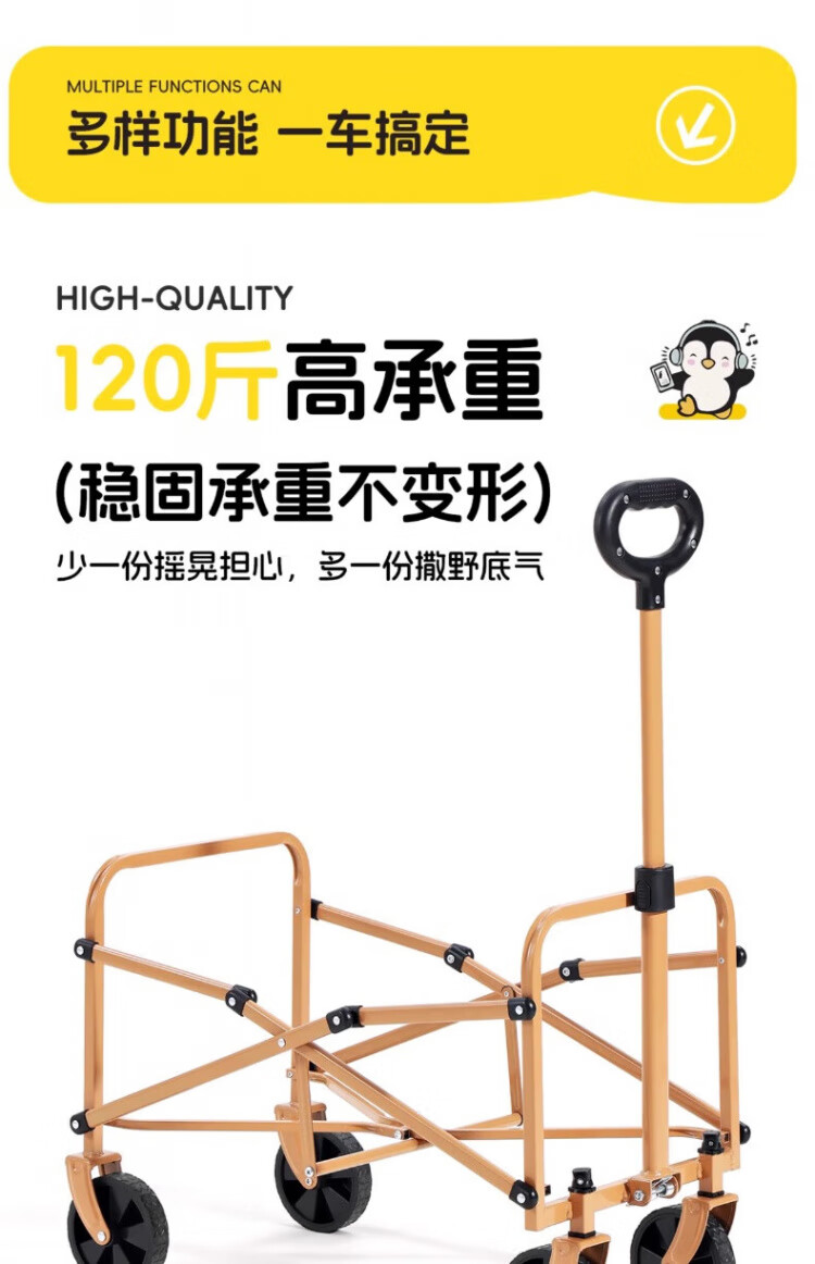 骆驼露营车不愧是户外神器!大容量设计能轻松容纳帐篷、炊具等全套露营装备,还能遛娃、取快递,一车多用超实用。加宽万向轮在草地、石子路推行顺滑,折叠后体积小巧不占后备箱空间。高强度车架结实耐用,自带桌板、刹车等贴心设计,颜值与实用性兼备,是家庭露营、周末野餐的省心之选
