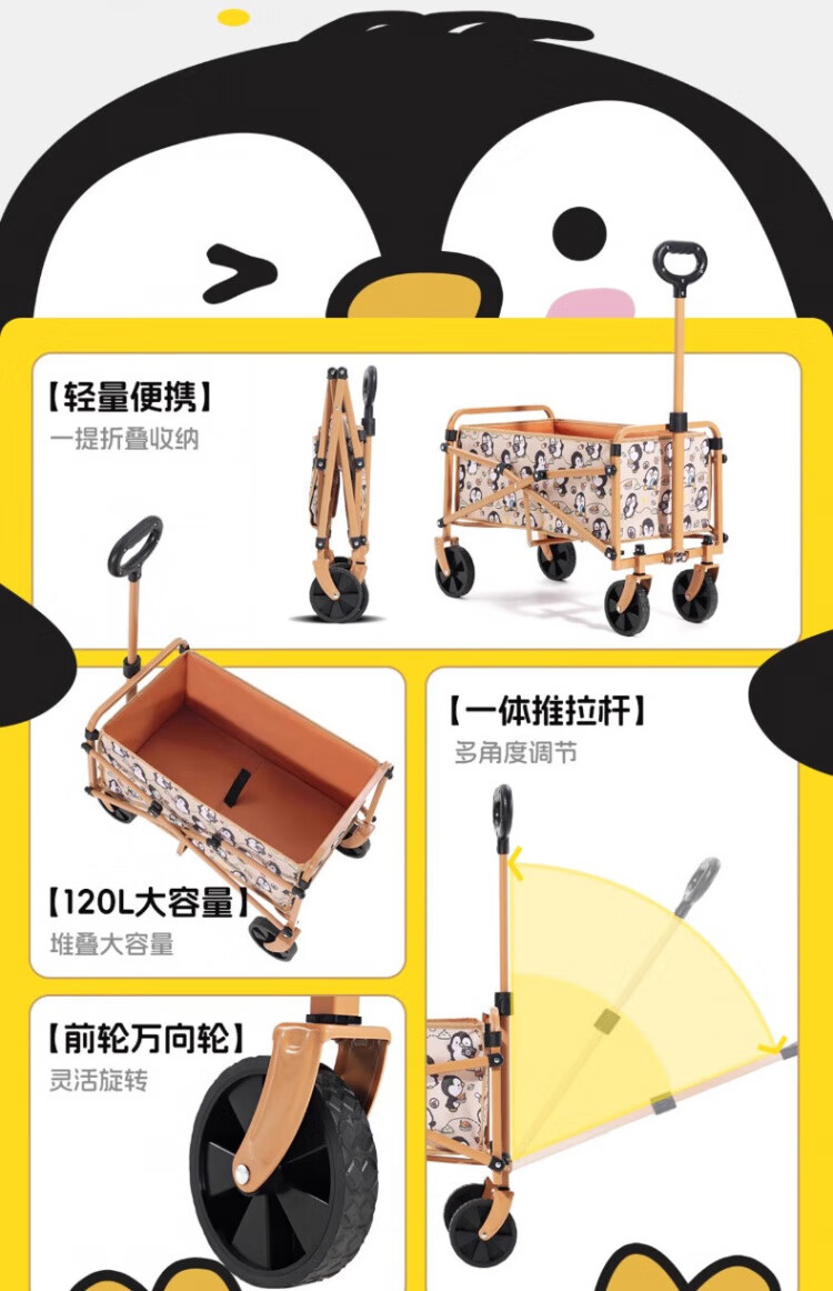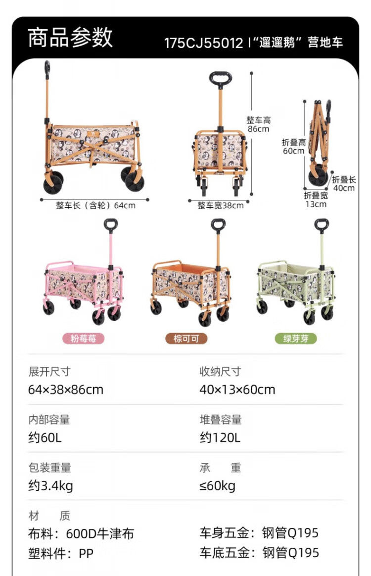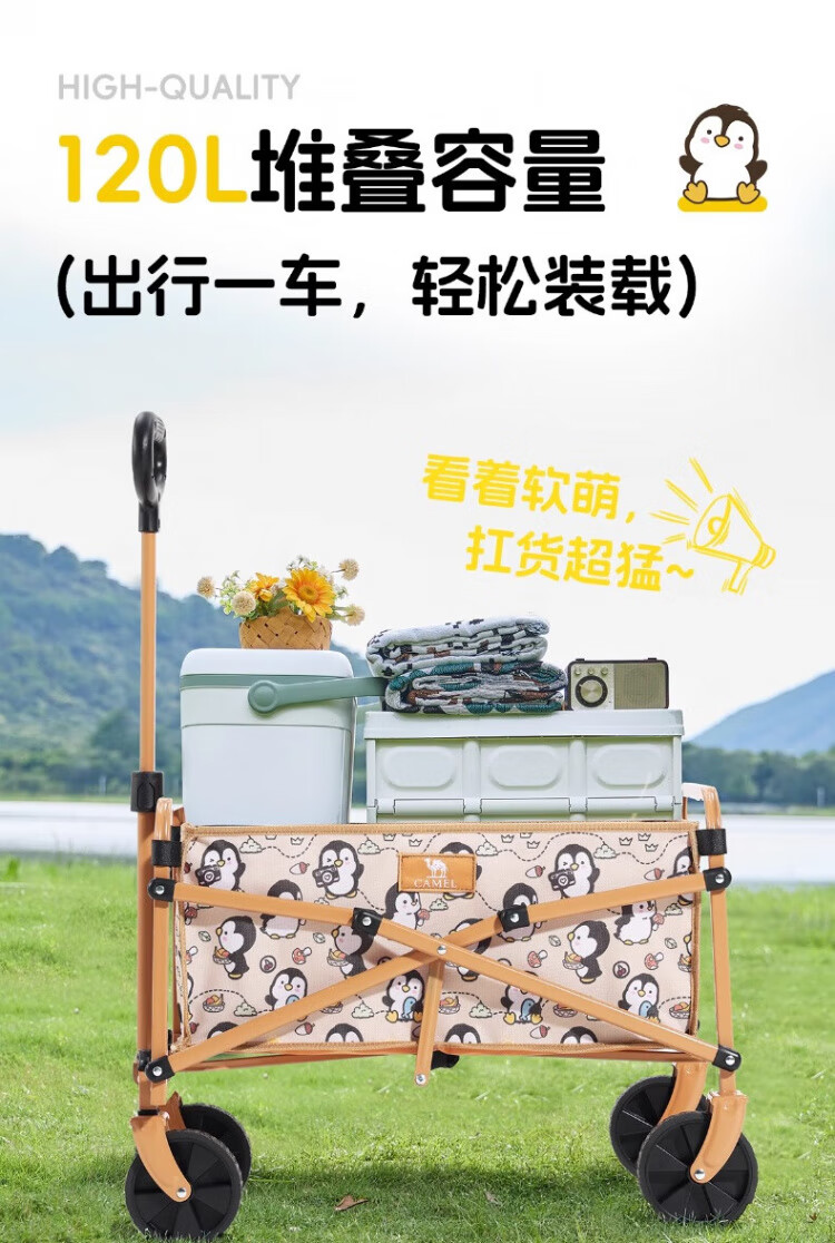 CAMEL遛遛鹅露营车家用户外折叠遛娃买菜手推拖车野餐野营遛狗小推车 绿芽芽, 120L ,175CJ55012