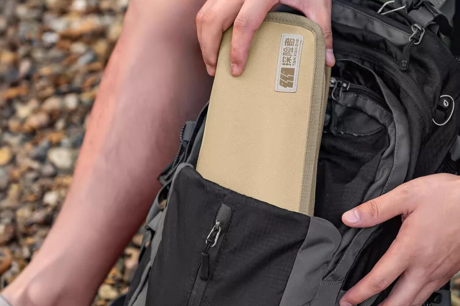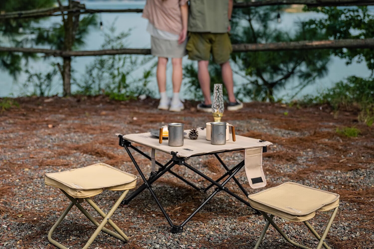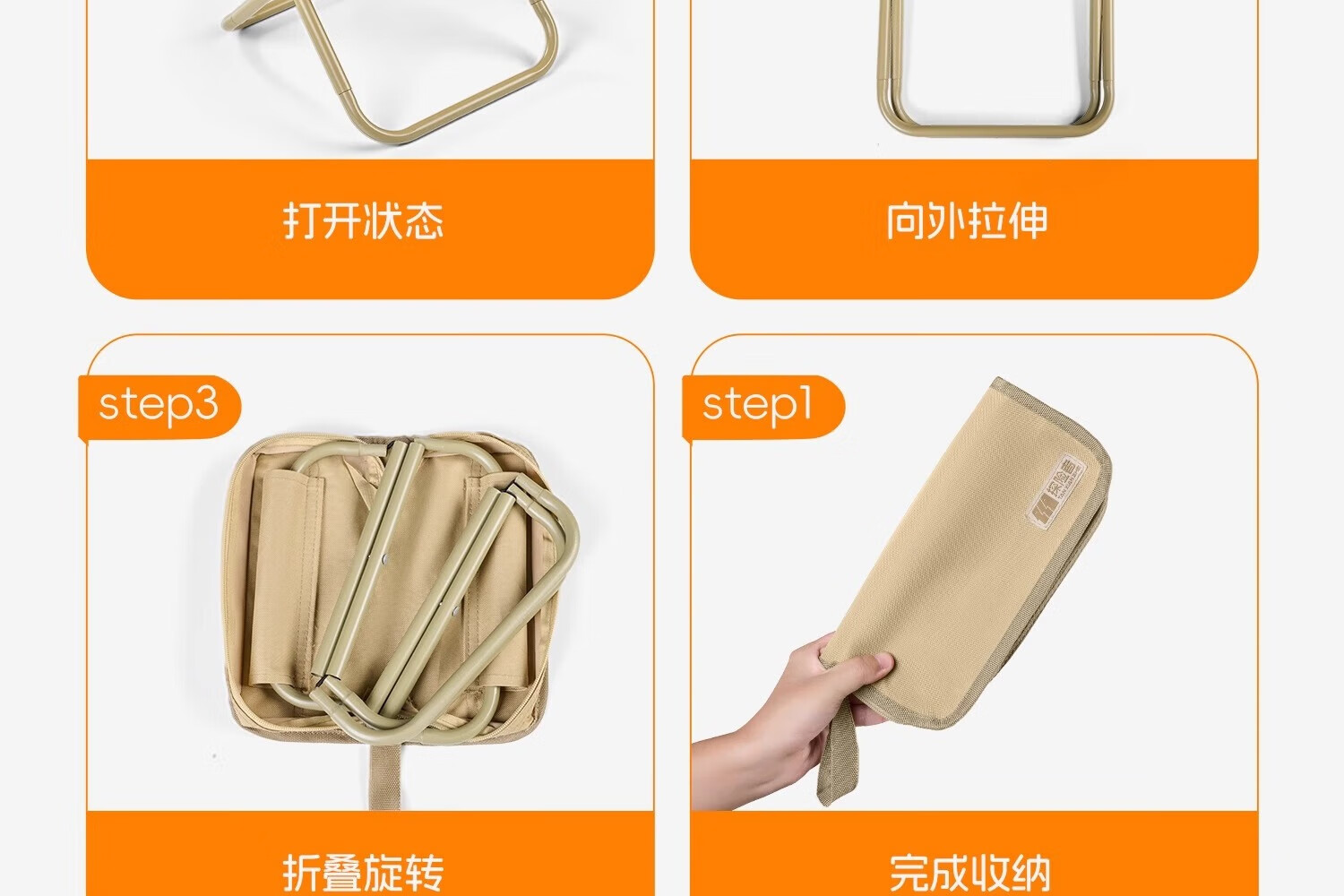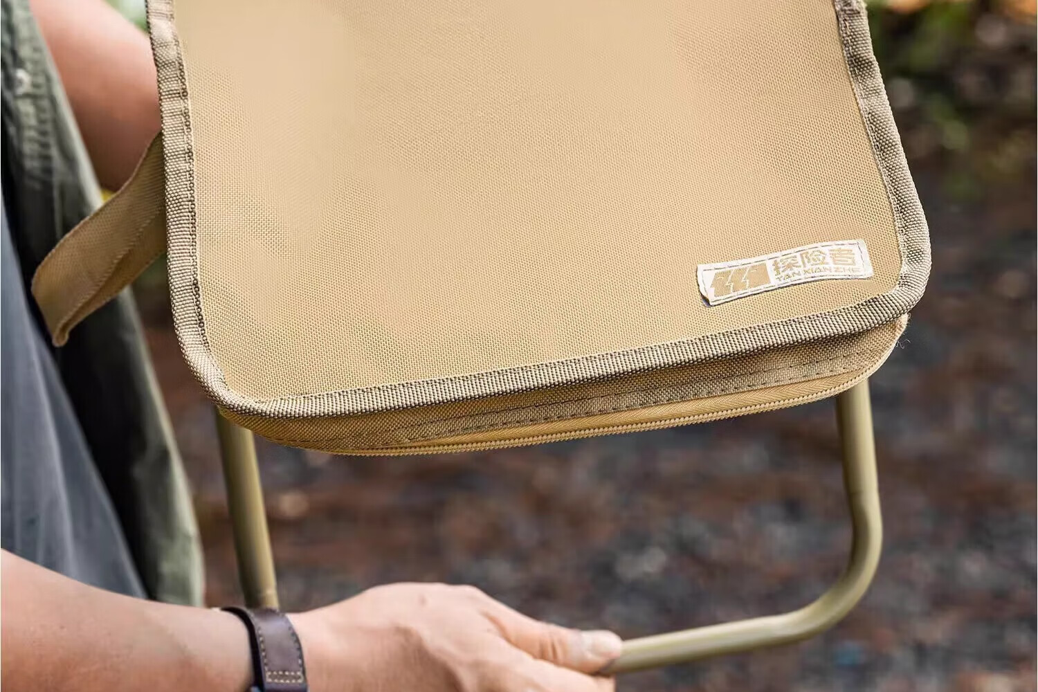 探险者折叠椅马扎凳便携板凳户外折叠椅子徒步登山公园野餐迷你凳 中号卡其手包折叠凳(双层牛津布)