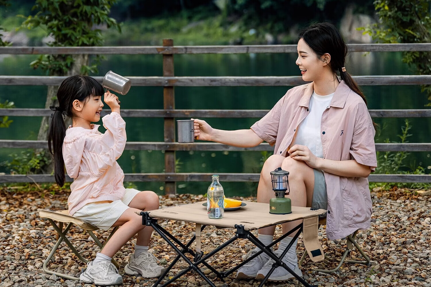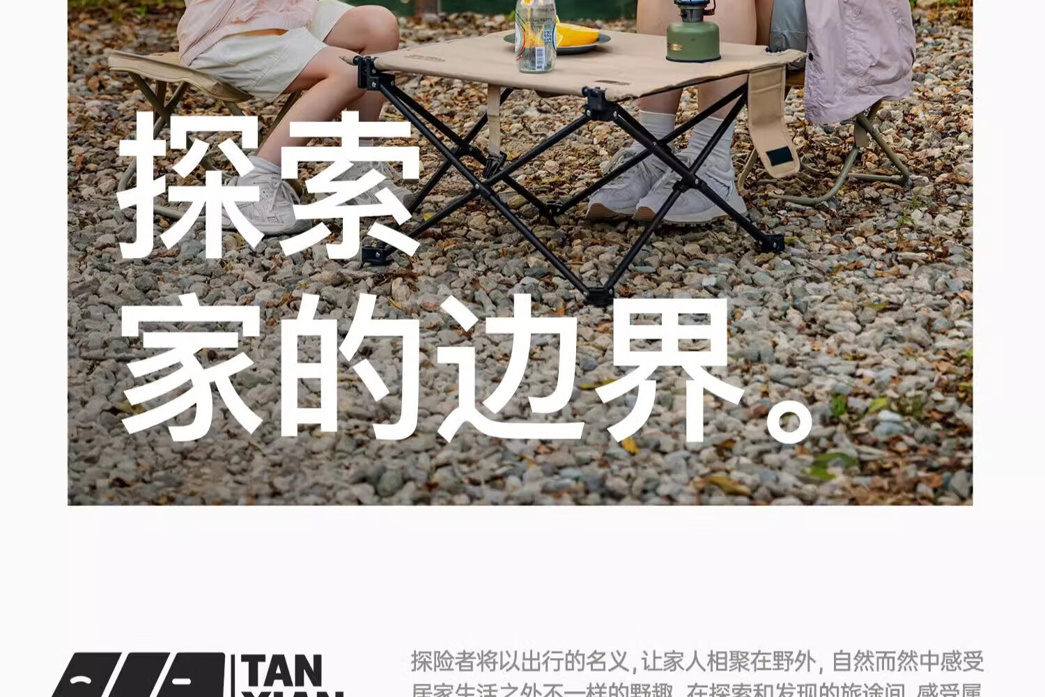 Guide Series户外铝合金折叠桌露营桌便携升降沙滩烧烤桌加宽桌自驾游车载桌 新 加宽金属 木纹黑色