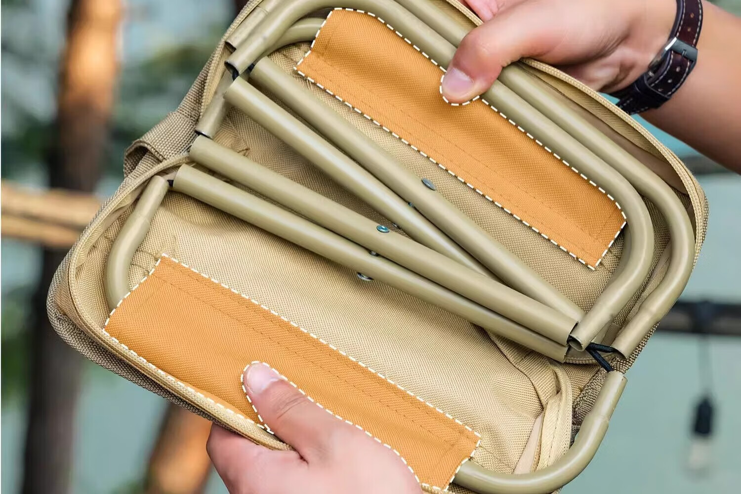 不需要组装工具,不能在沙滩上用,只能用于硬质地面。携带轻便。适合偶尔野外使用。不适合每天乘坐地铁公交,频繁拆卸、组装。因为该结构中,钢管内置的弹性绳很容易在反复拆装过程中被磨断。钢管说是加粗的,实际上只有13毫米粗1毫米厚。折叠包有点小,折叠后拉链不容易拉上。