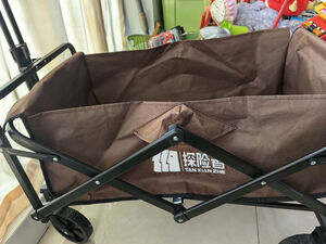 车子轮说是静音轮、这噪音、在室内瓷砖地面上也是非常大噪音、挂羊头卖狗肉、客服也是机器人、说让我邮寄回去换、箱子在快递站就扔掉了、没有送上门还的自己去取那么重、帐篷是不错的也够大、这车可真是不咋地