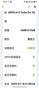 OPPO K13 Turbo 【补贴】越级性能先锋 疾风散热引擎 潮汐引擎 天玑 8450 新款5G手机 黑武士 12GB+512GB