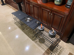 原来有三张的桥桌,到人多出去露营还是不够用,又买了四张网桌,搭配着一起用,基本的杂物都可以摆放有序不会再因为找东西花许多时间了!